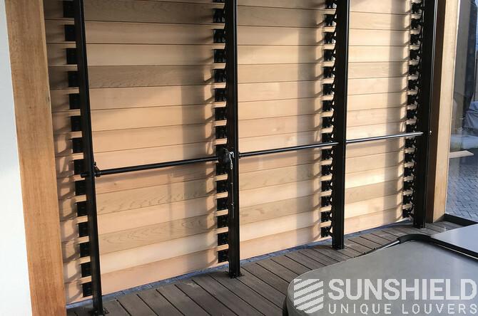 The residents have chosen the 153-W louver. A wooden slat with a width of 153 mm, made of untreated Western Red Cedar.