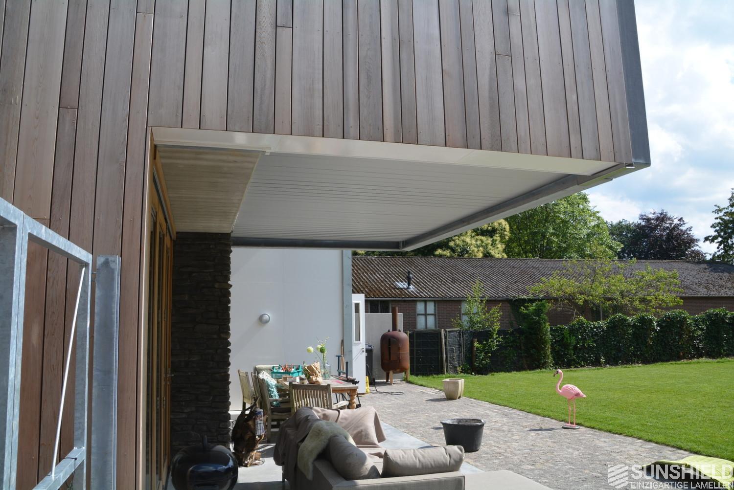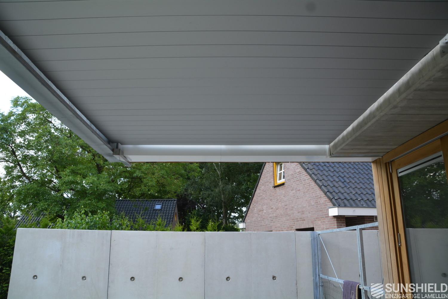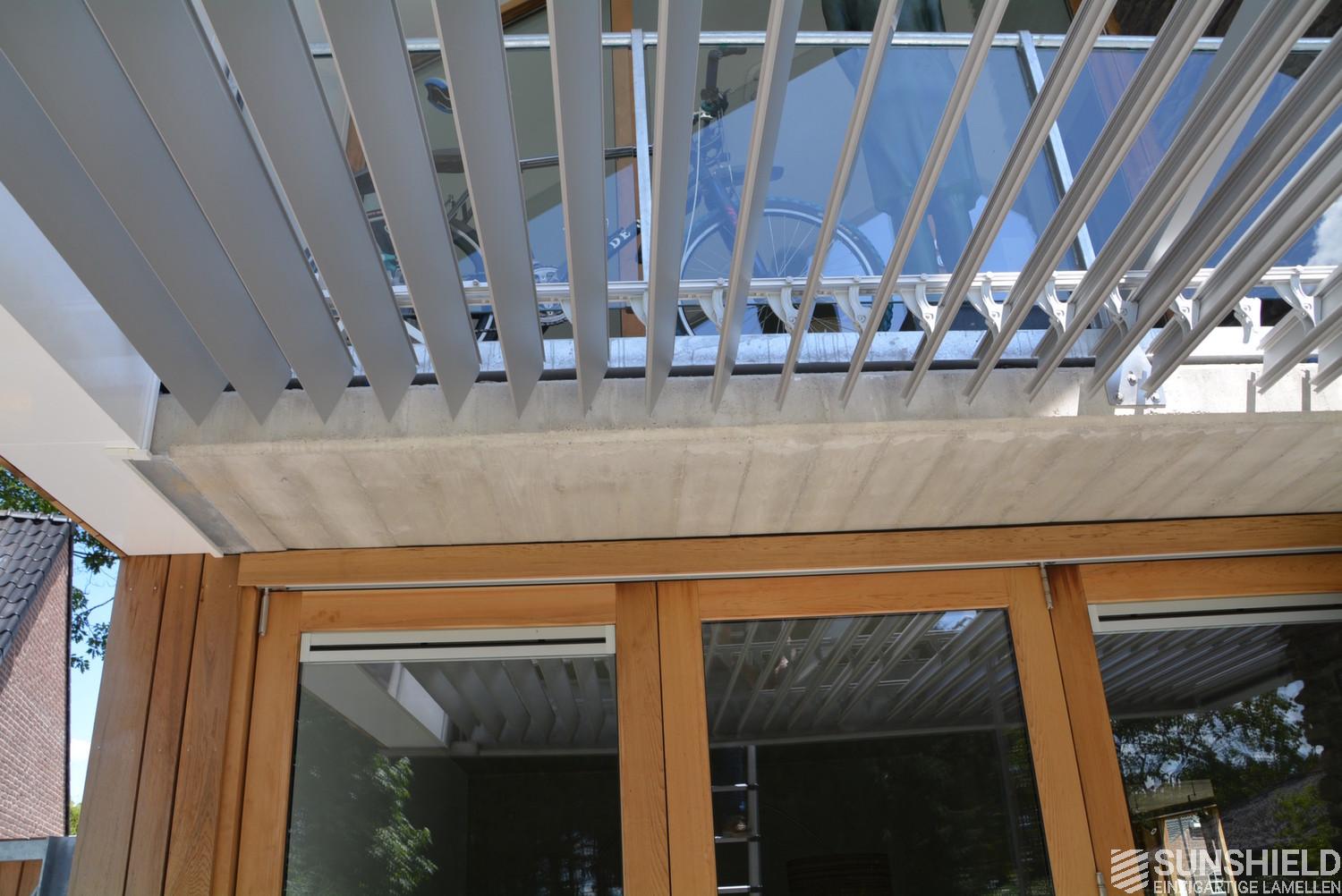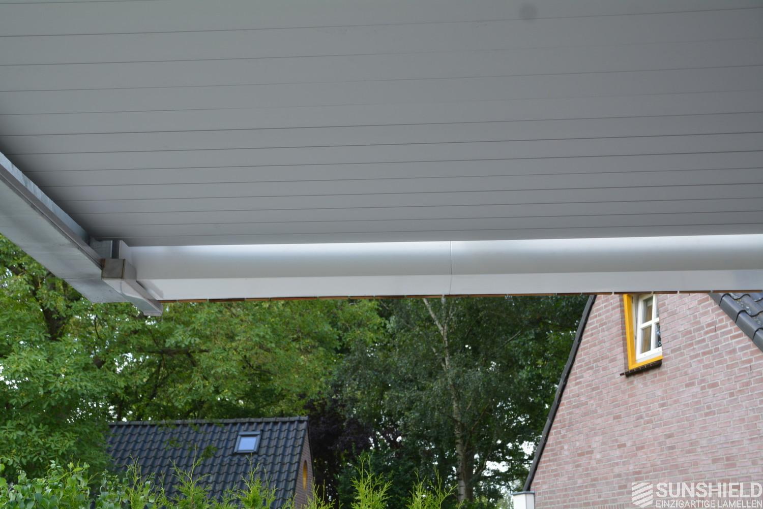 The residents ultimately opted for the 155-E louver. With this type, the slats not only fall over each other, but also interlock into each other. This way a waterproof surface is created.