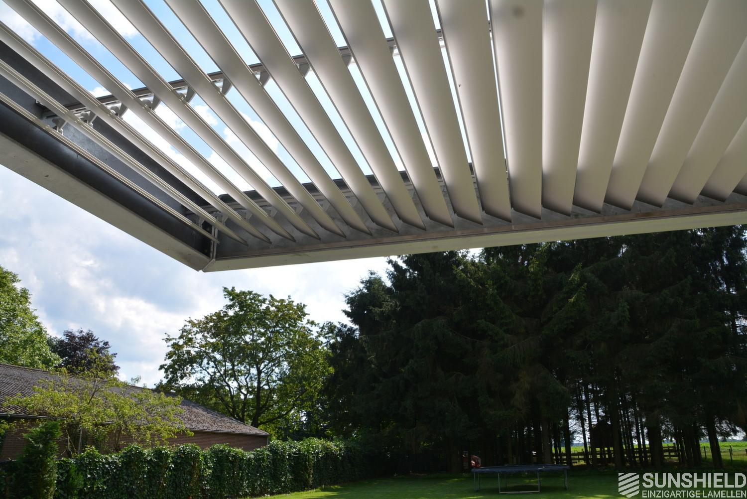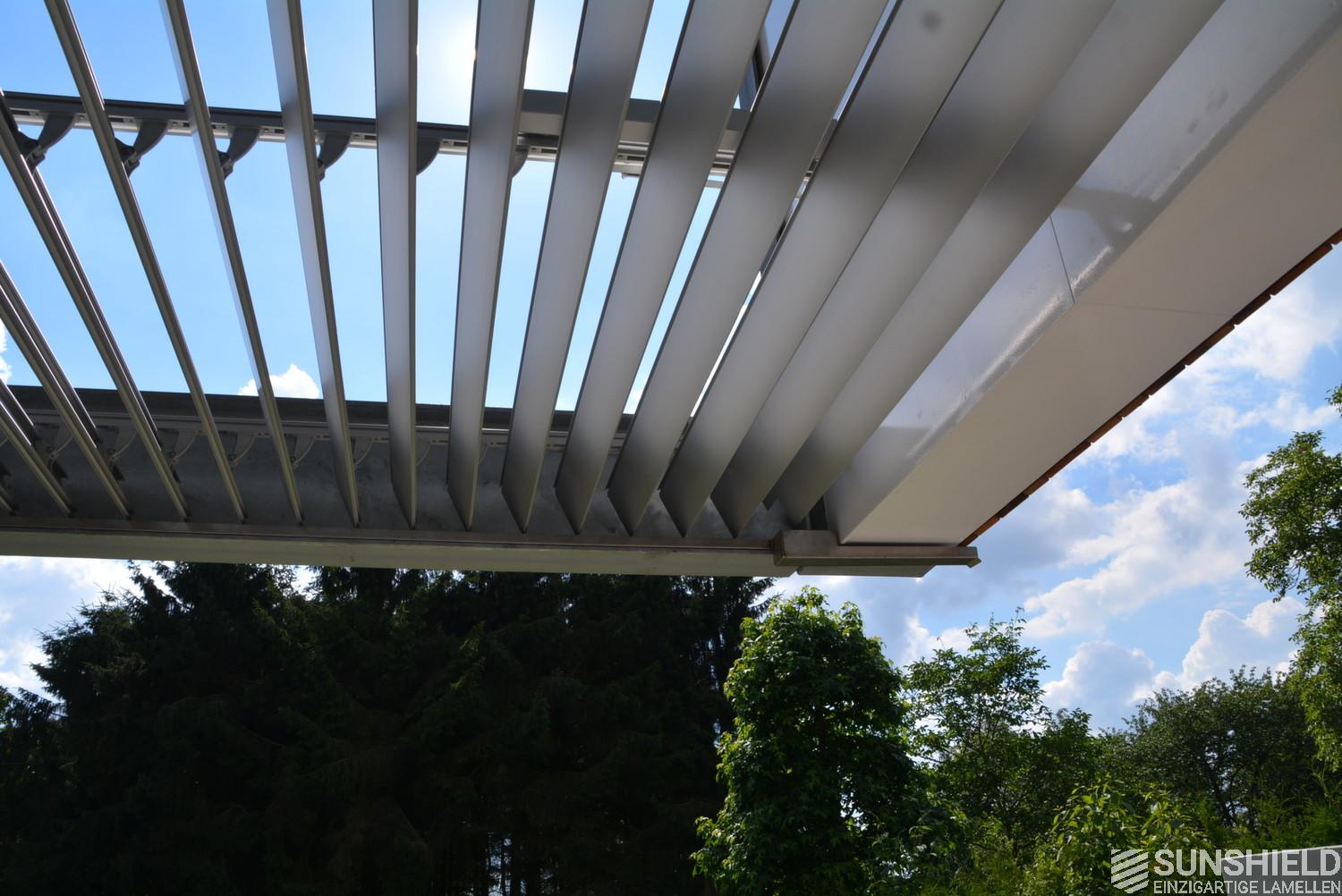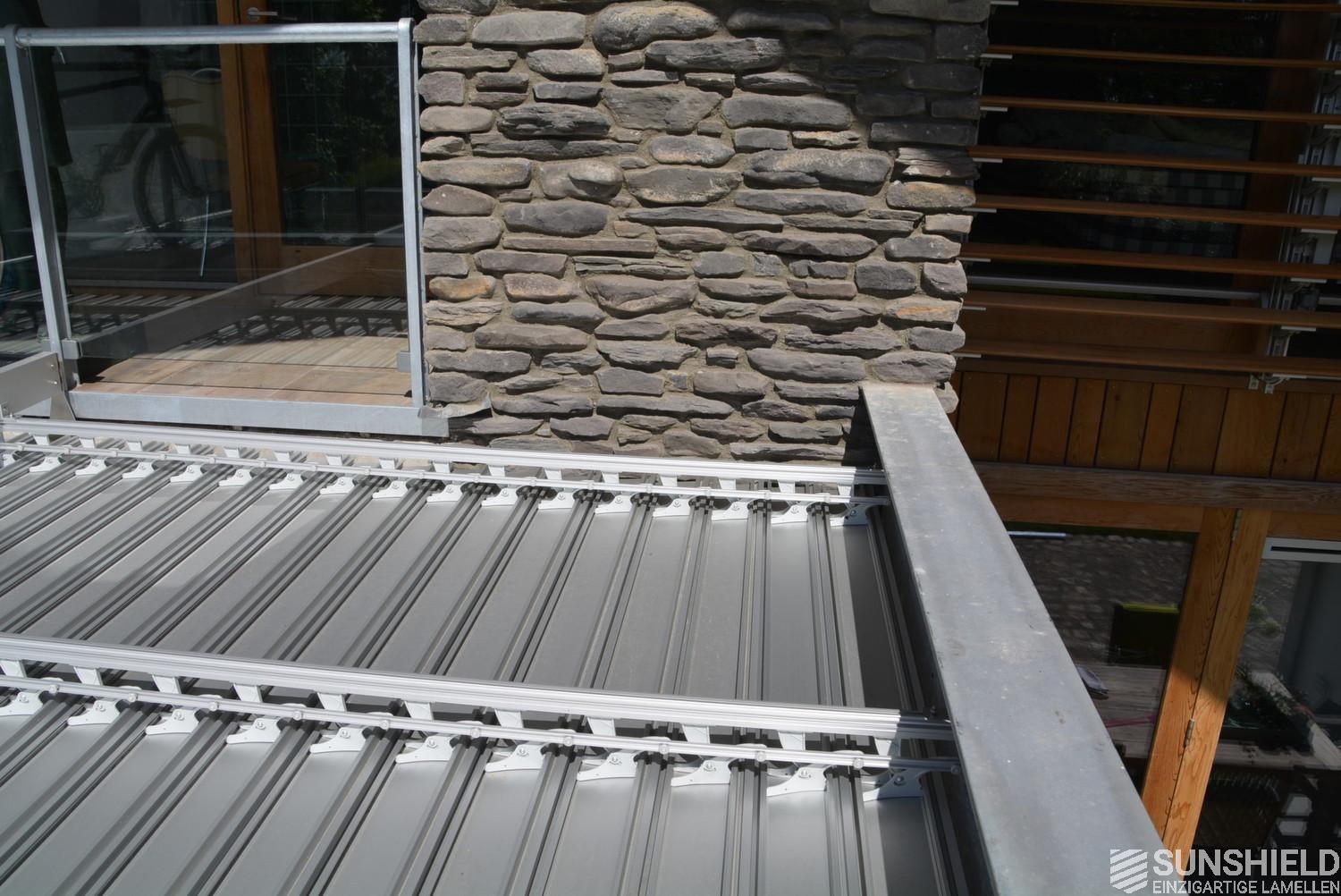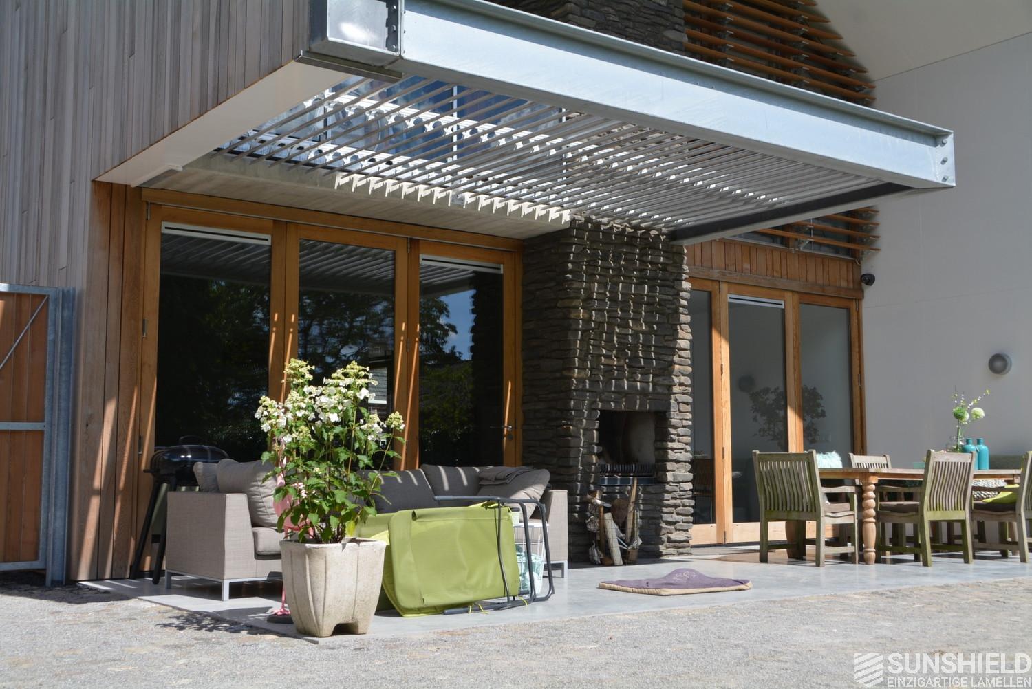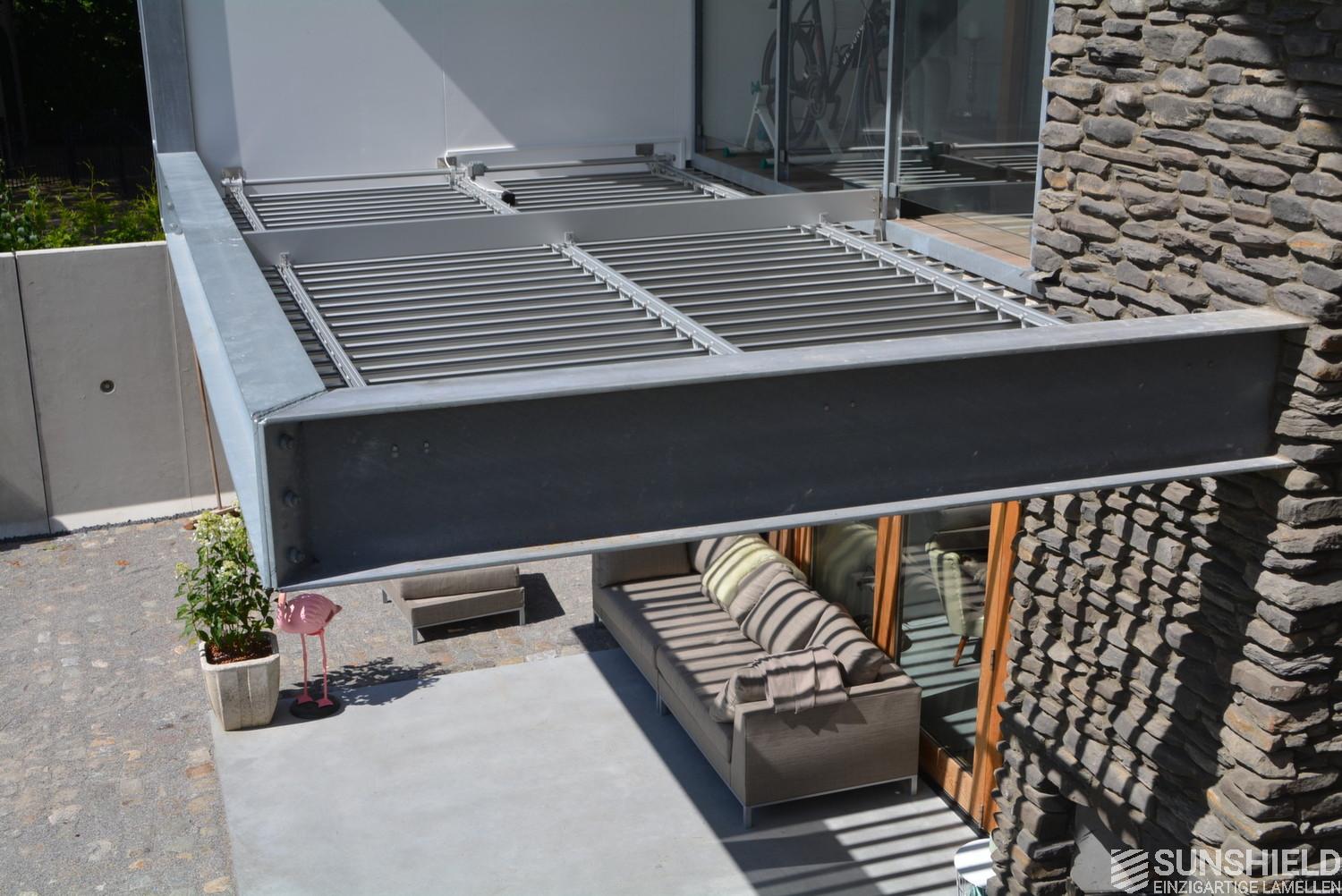 The installation of a louver roof has already been taken into account when designing the house. The slatted roof could therefore easily be mounted on the steel construction.