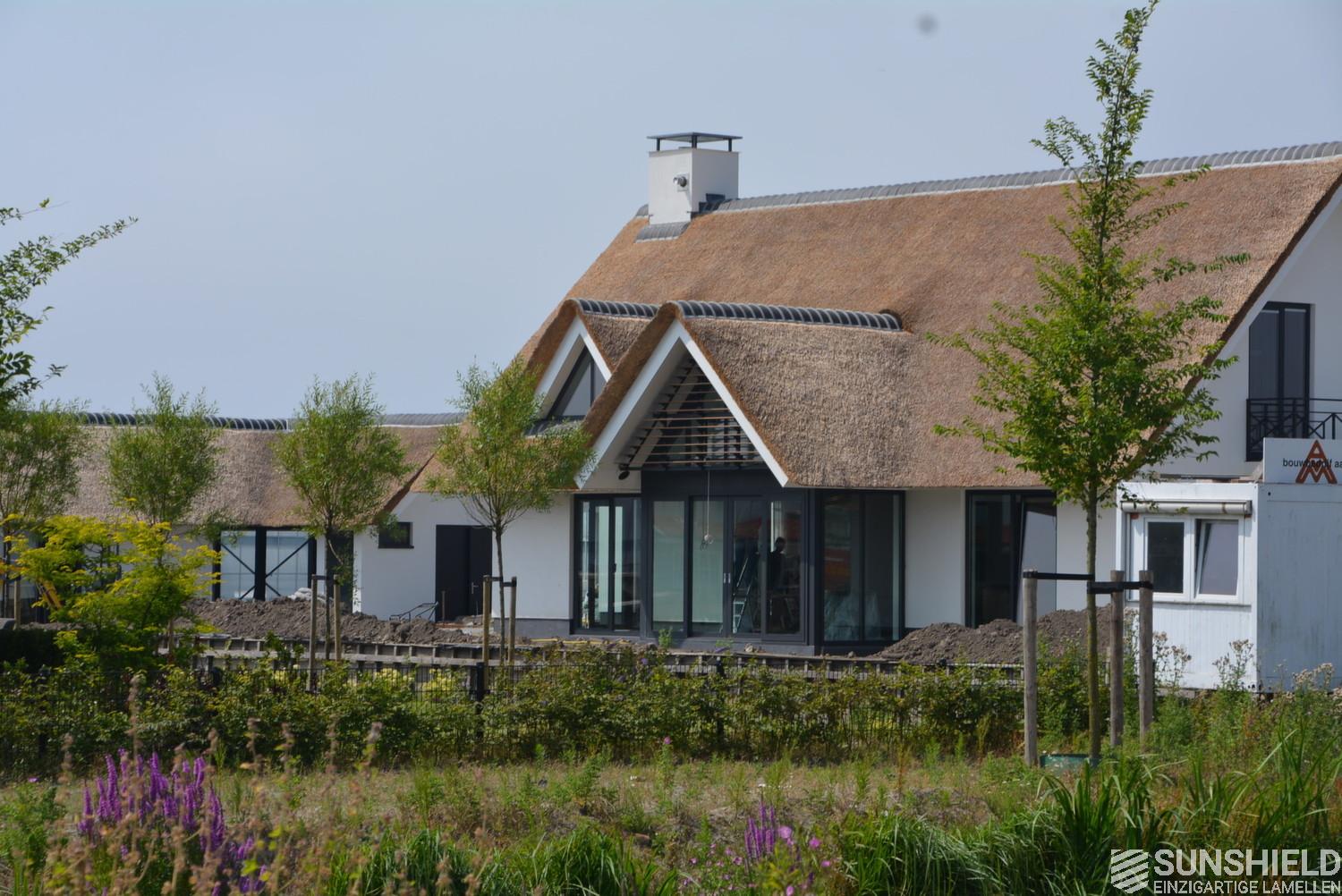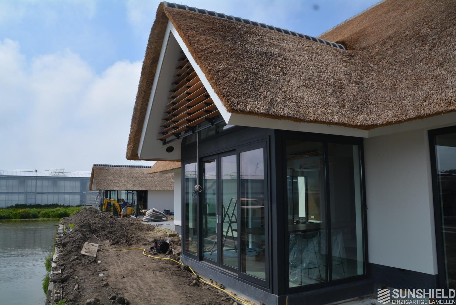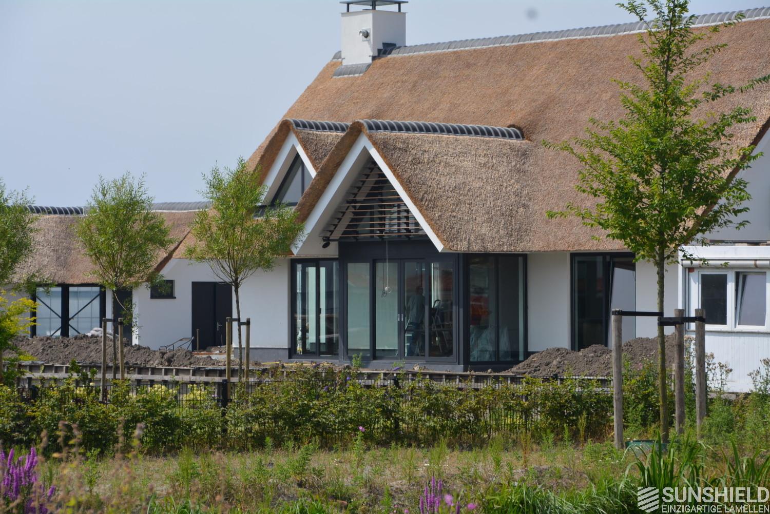 Here is a modern villa fitted with unique louvers. The residents have chosen the 148-W louver. A slat with a width of 148 mm and a view between the louvers of 140 mm – so with a good view.