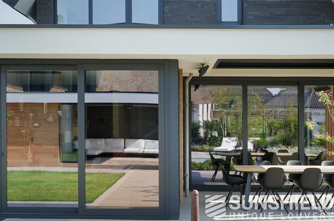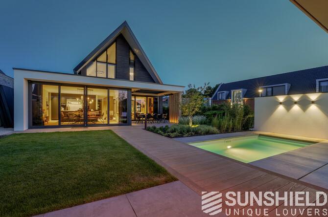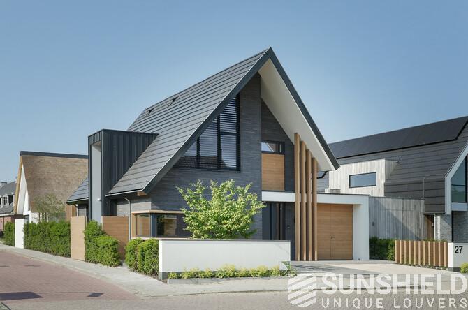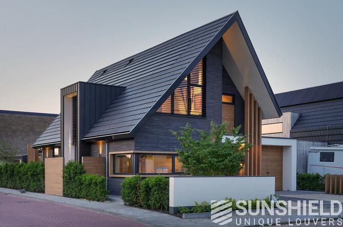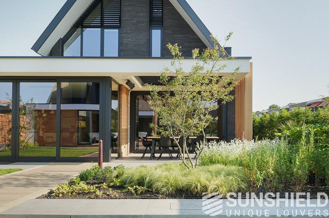 Here, in collaboration with Bongers Architects in Oud-Alblas, a modern villa is provided with multiple louver systems. By Sunshield.