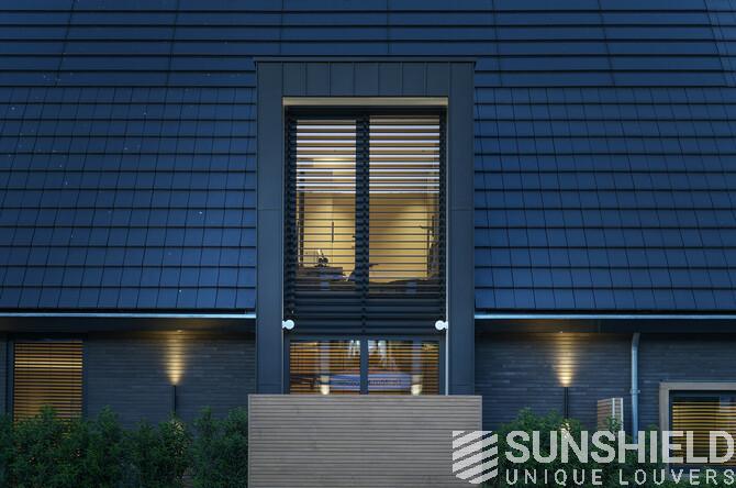 All louver systems are equipped with the 96-E louver, a 96 mm wide blade. If the slats are fully open, the view between the louvers is 9 centimetres. So you daylight, and view are retained.
