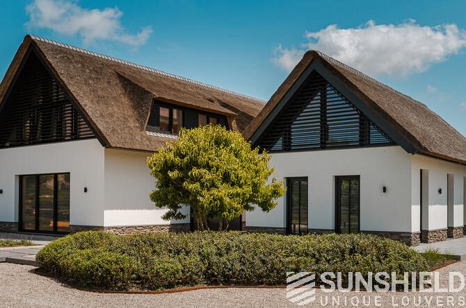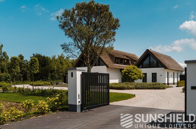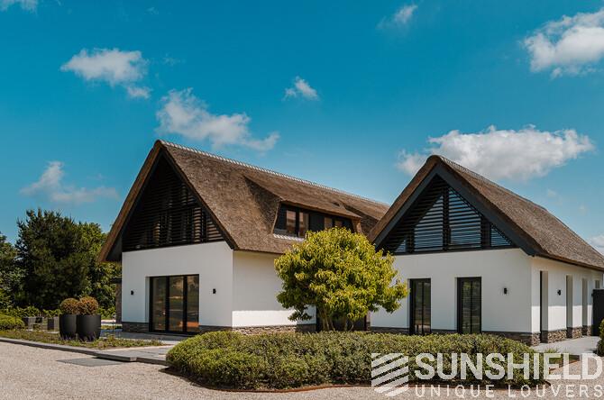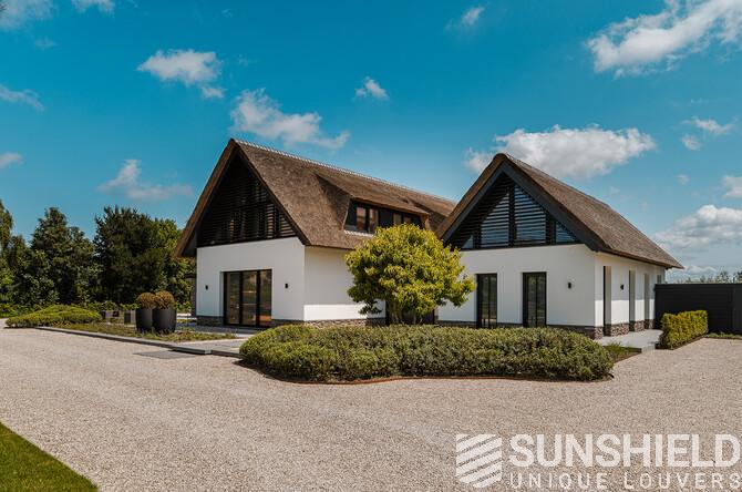 Here, a modern villa, designed by HDK Architects, stands proud. This country house features unique louvers, installed by Sunshield, commissioned by A. den Haan Contractors in Oostvoorne (NL).