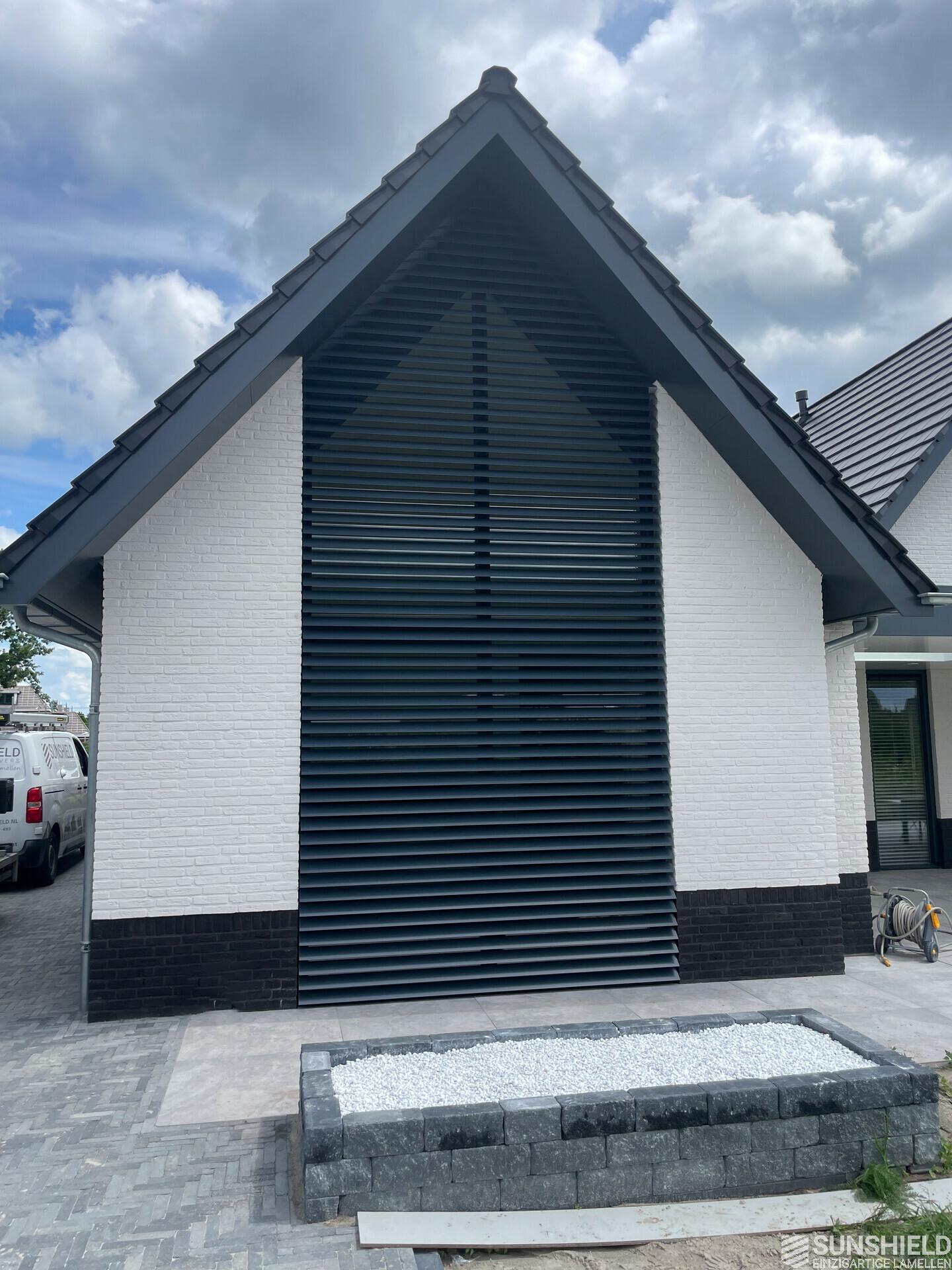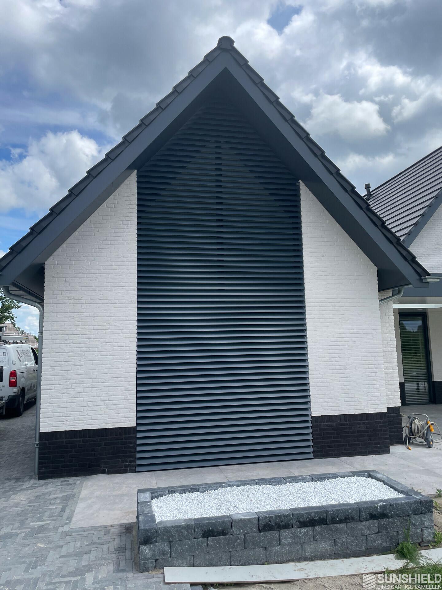 In the area of Almelo in the Dutch province of Overijssel, there is a detached house fitted with unique louvers. By Sunshield, in collaboration with Contractor company J.A. Roetgerink in Goor.