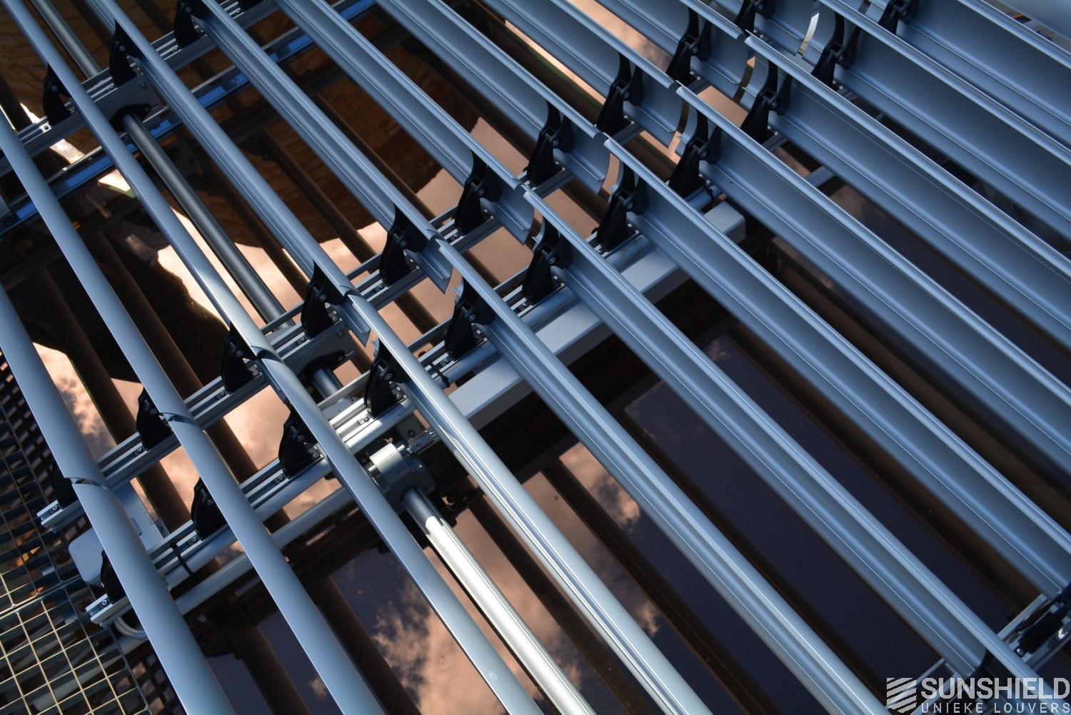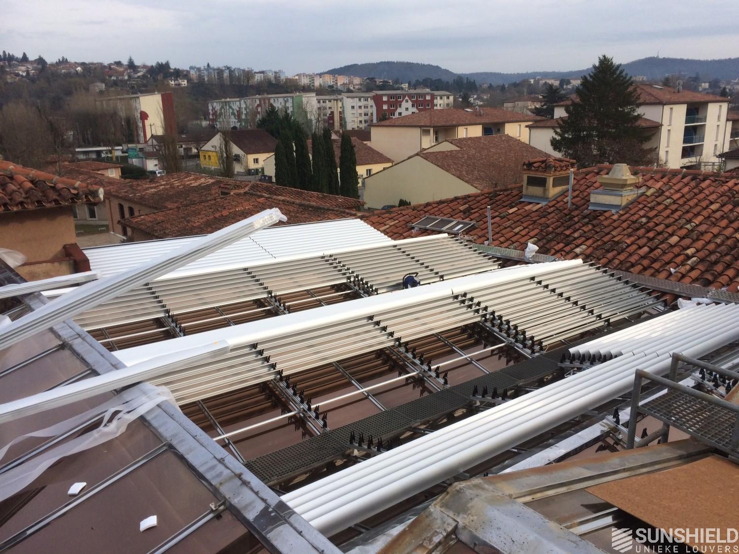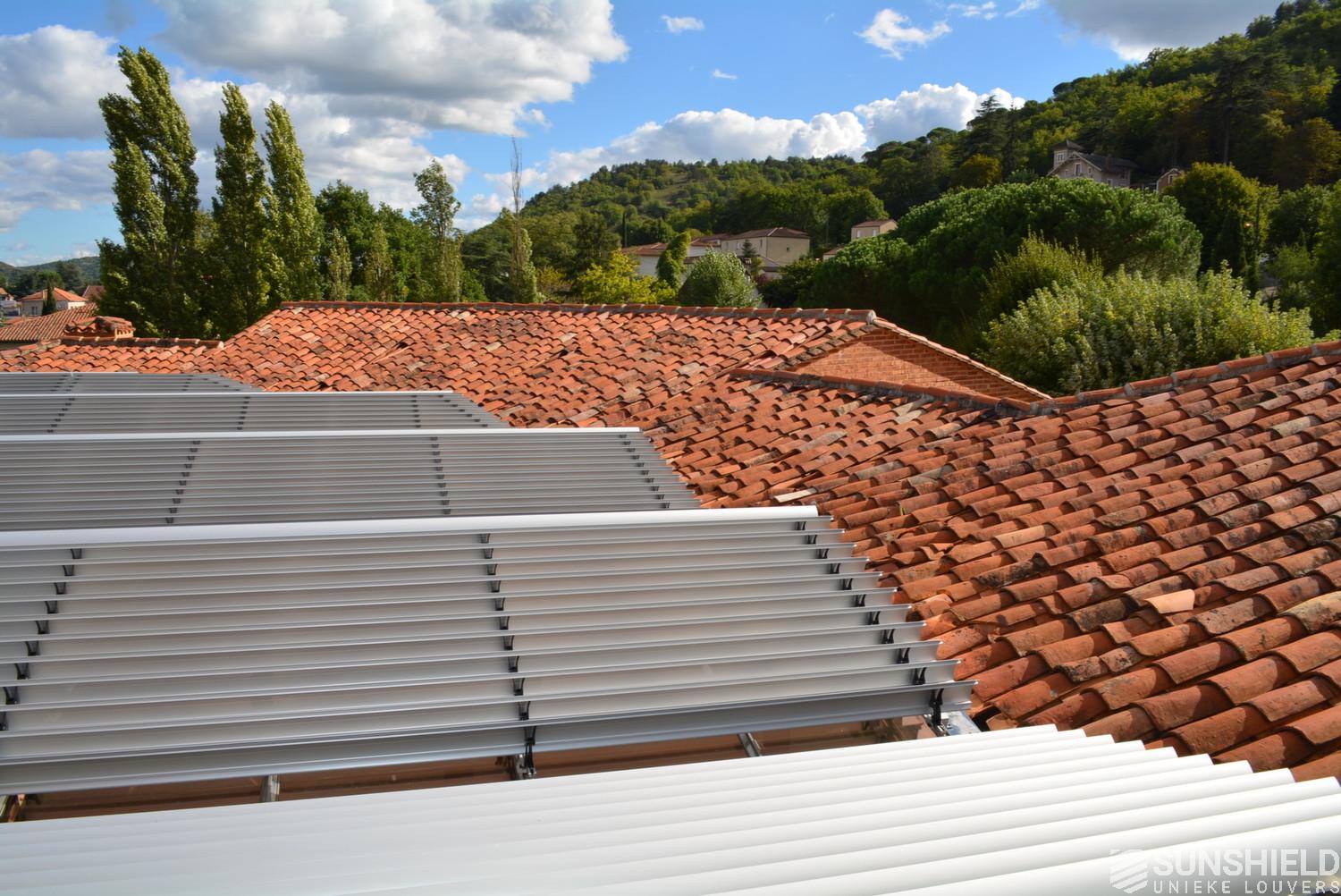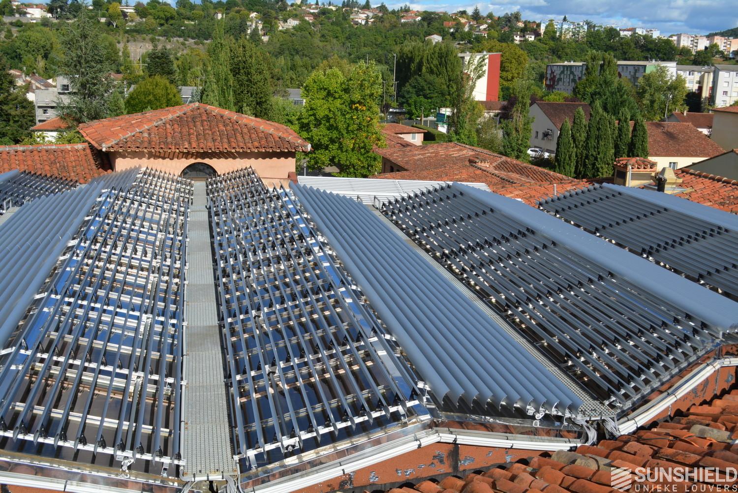 The solution has been designed and installed by Sunshield's business partner Selves in Montauban, with direct support of Somfy France for the automatic control and steering of the tilting louvers. The end result is a very robust and easy to operate system.