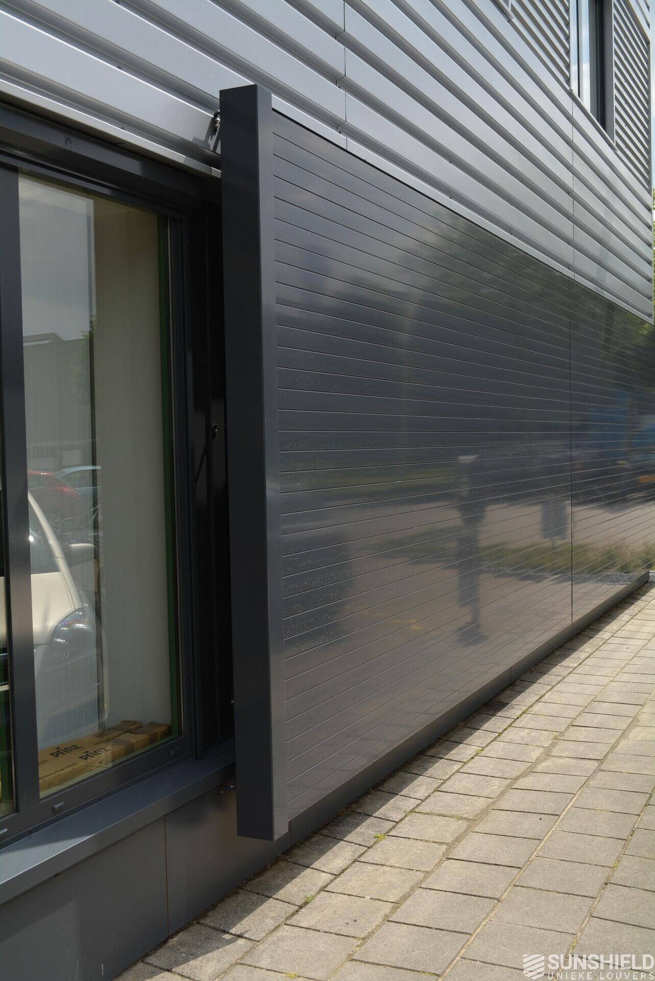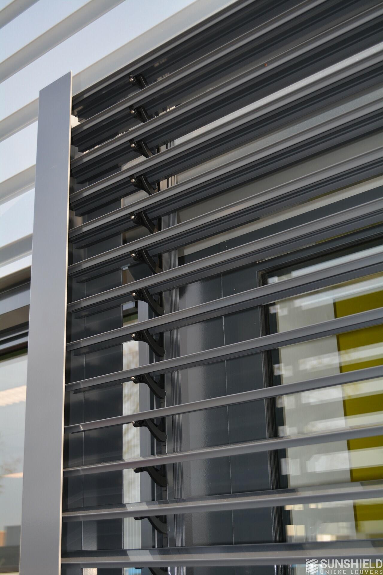 Habufa has opted for the 88-E louver, a slat with a step size of 70 mm. Due to the profile of the 88-E, blades not only overlap, but also interlock.