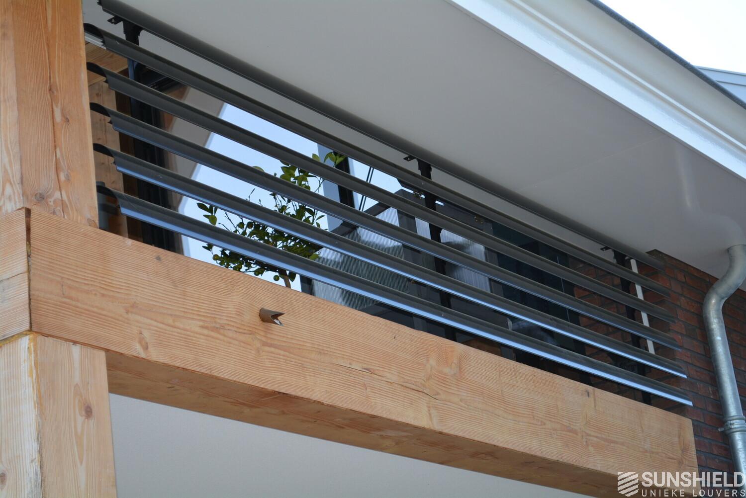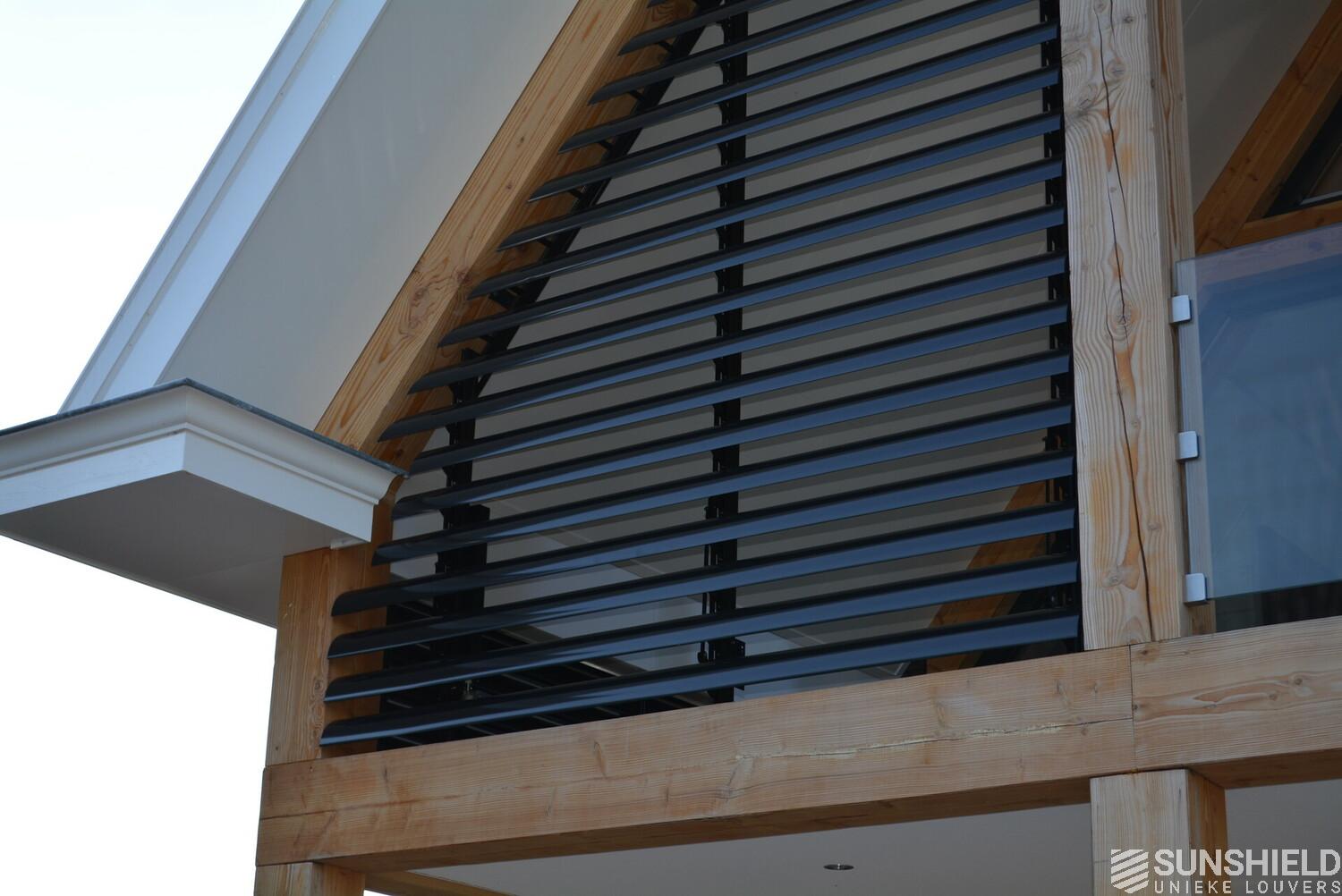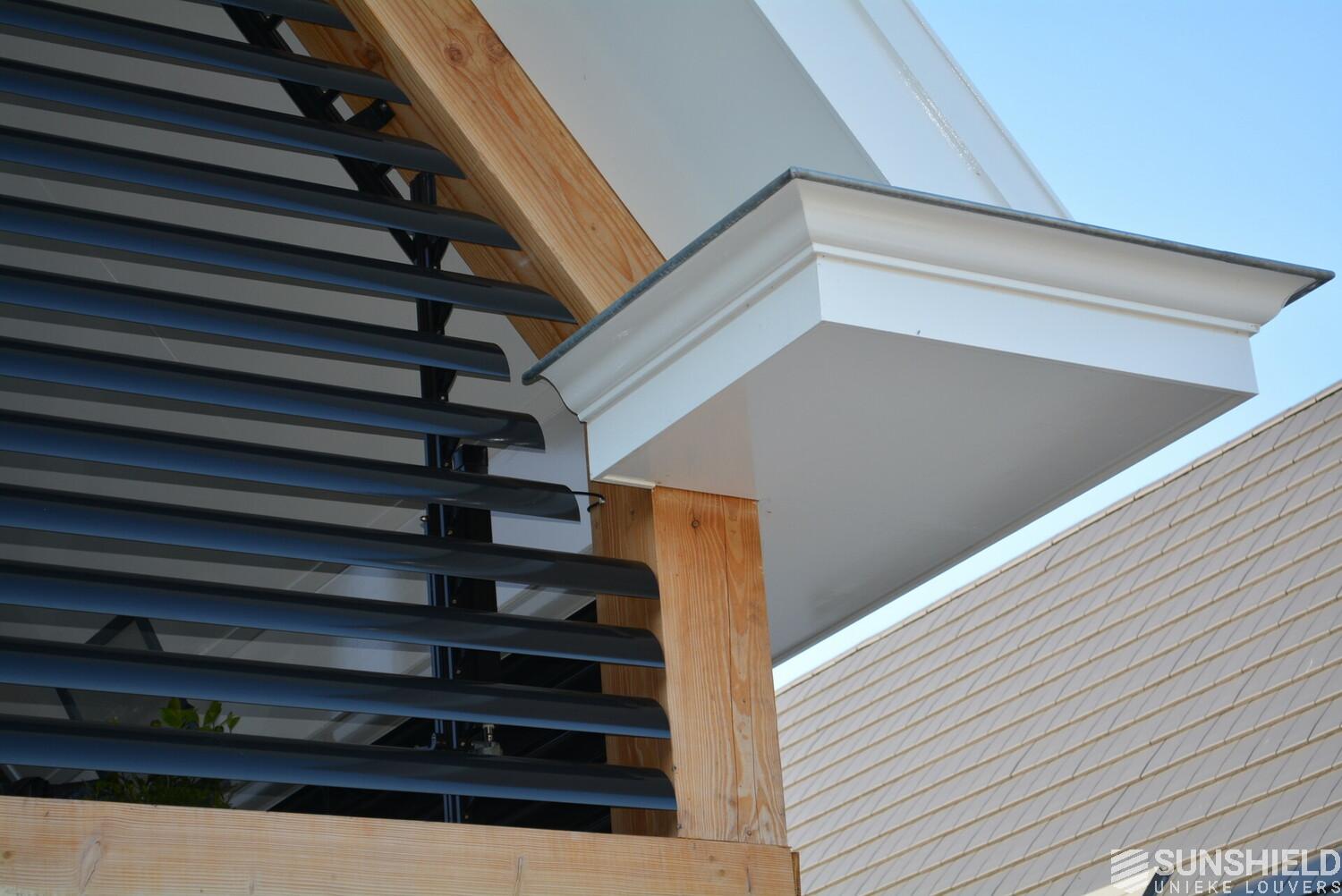 The residents here have opted for the 145-E louver. A slat with a convex front and a width of 145 mm. The bigger brother of the 75-E so to speak.