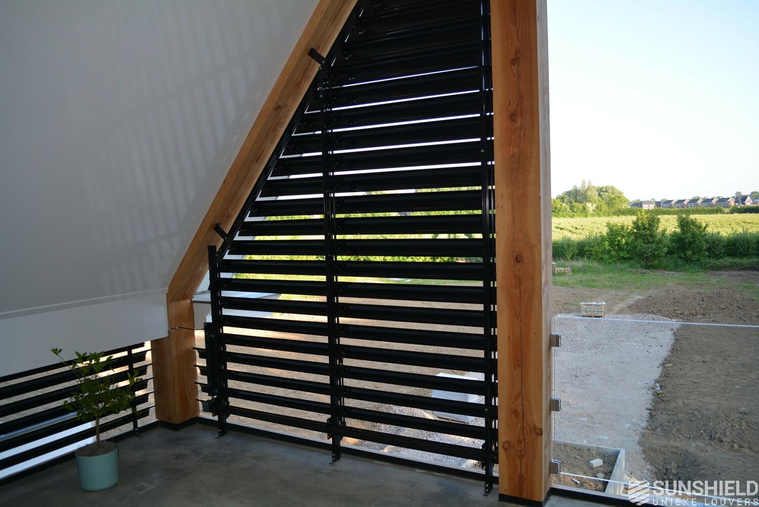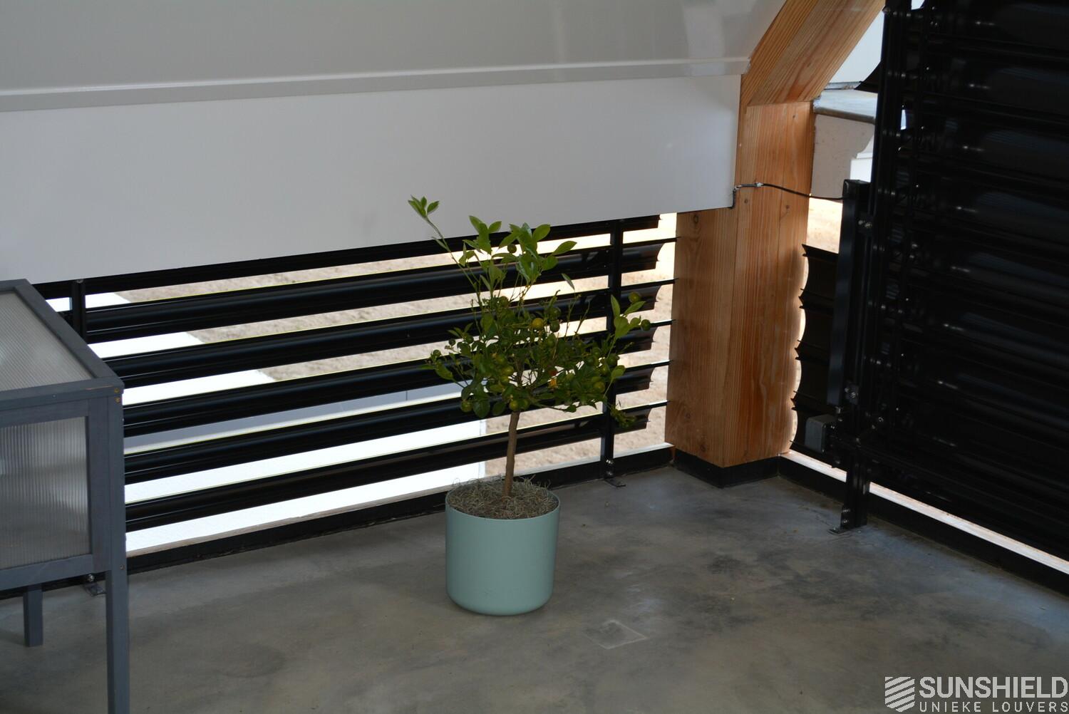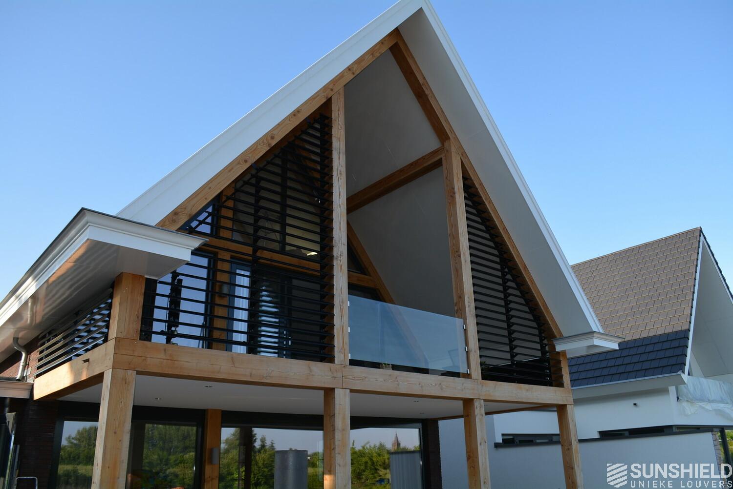The residents here have opted for the 145-E louver. A slat with a convex front and a width of 145 mm. The bigger brother of the 75-E so to speak.