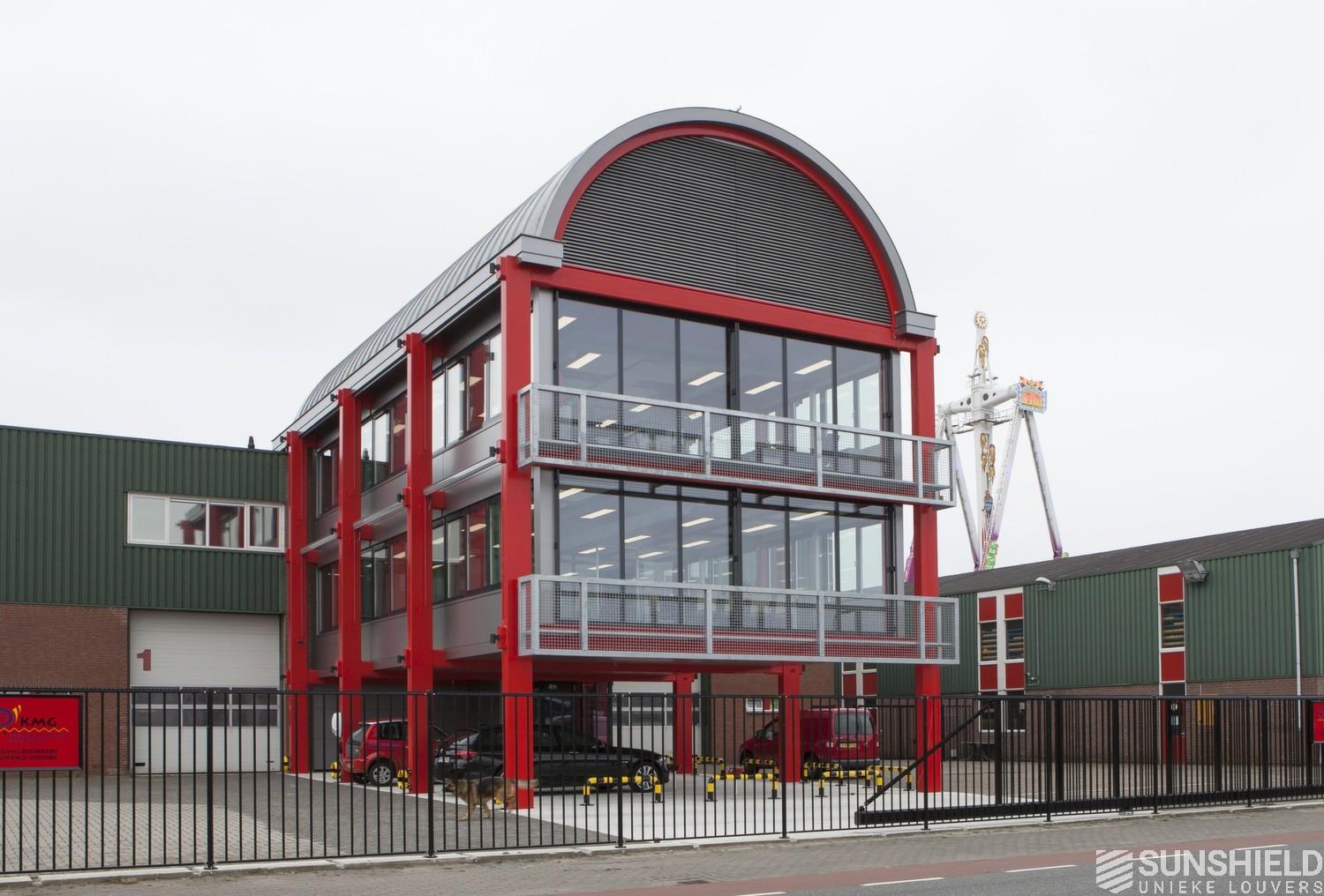 The front facade of KMG is oriented towards the south, and the arched shape required a special solution. KMG is specialized in Fair attractions. The project has been realized by Vivante Bosman, a Premium Partner of Sunshield.