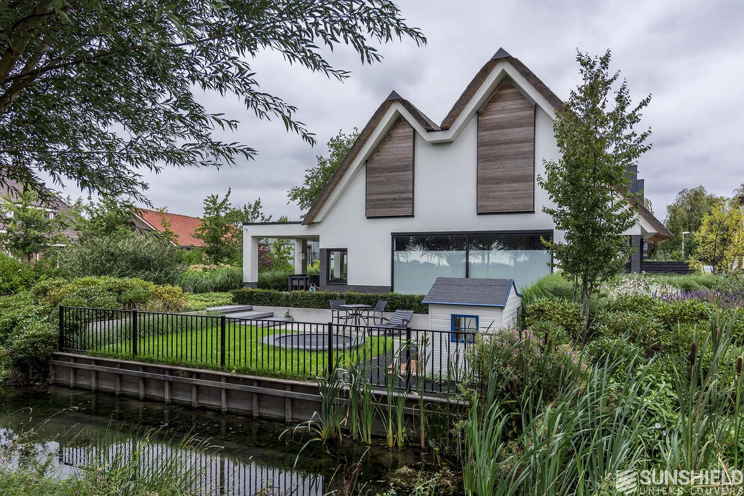 In the village De Meern, nowadays part of the municipality of Utrecht, a beautiful villa has been built. This detached house, a creation of the architects Bekhuis & Kleinjan, has a thatched, zigzag shaped roof.