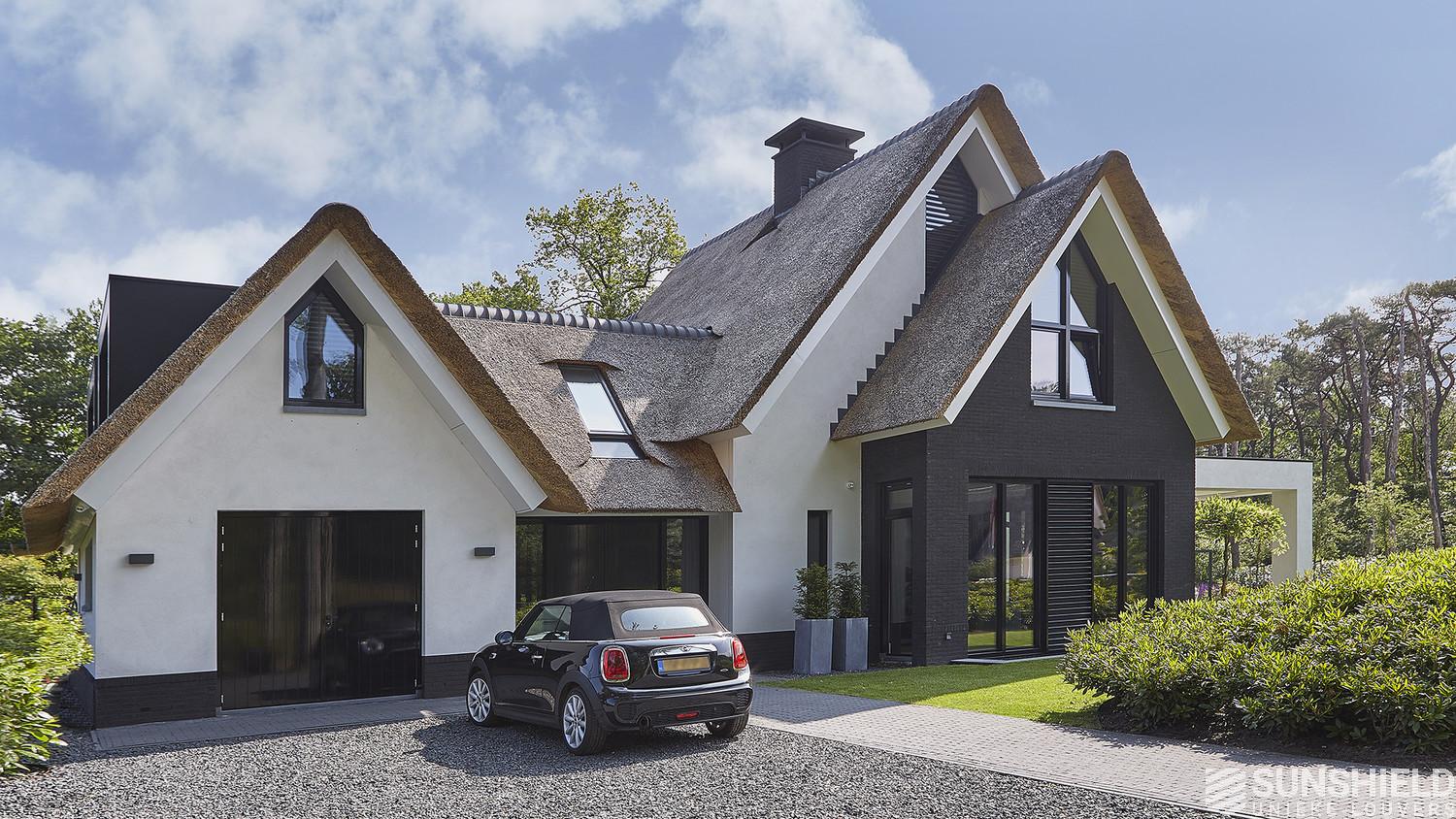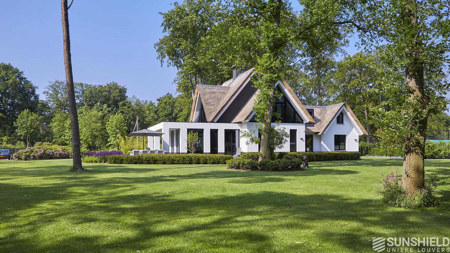 Here Sunshield, in collaboration with Buro Go and Ter Braak Architecten, has fitted a luxurious country house with unique louvers. By taking the use of Sunshield blades into account in the specifications, the facades show a beautifully integrated and harmonious ensemble.