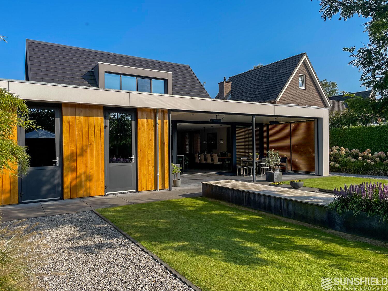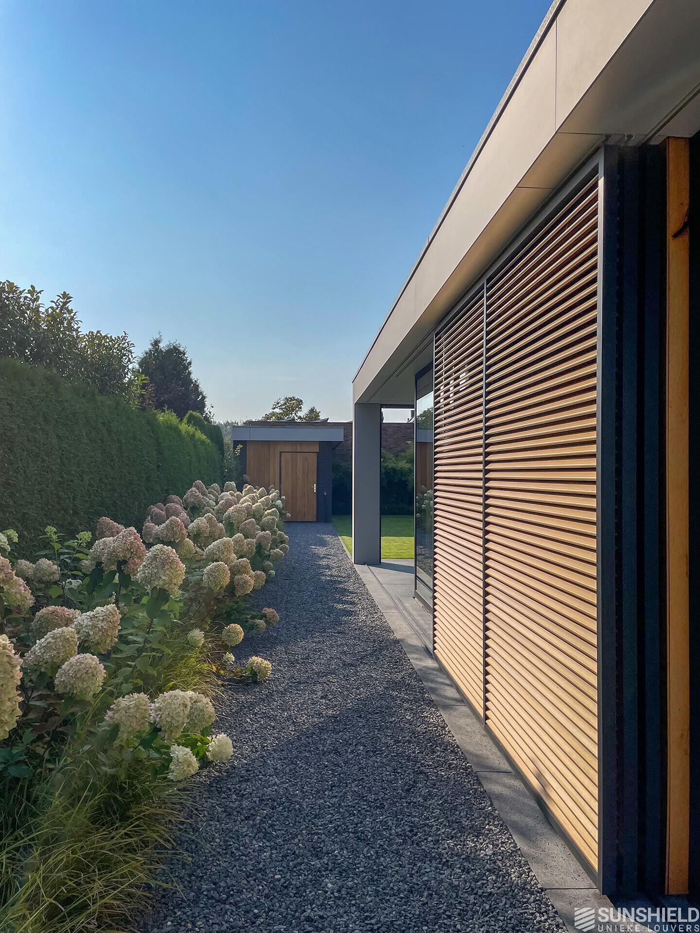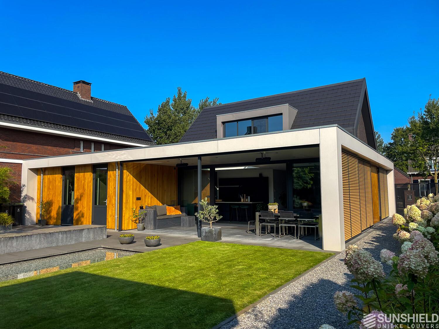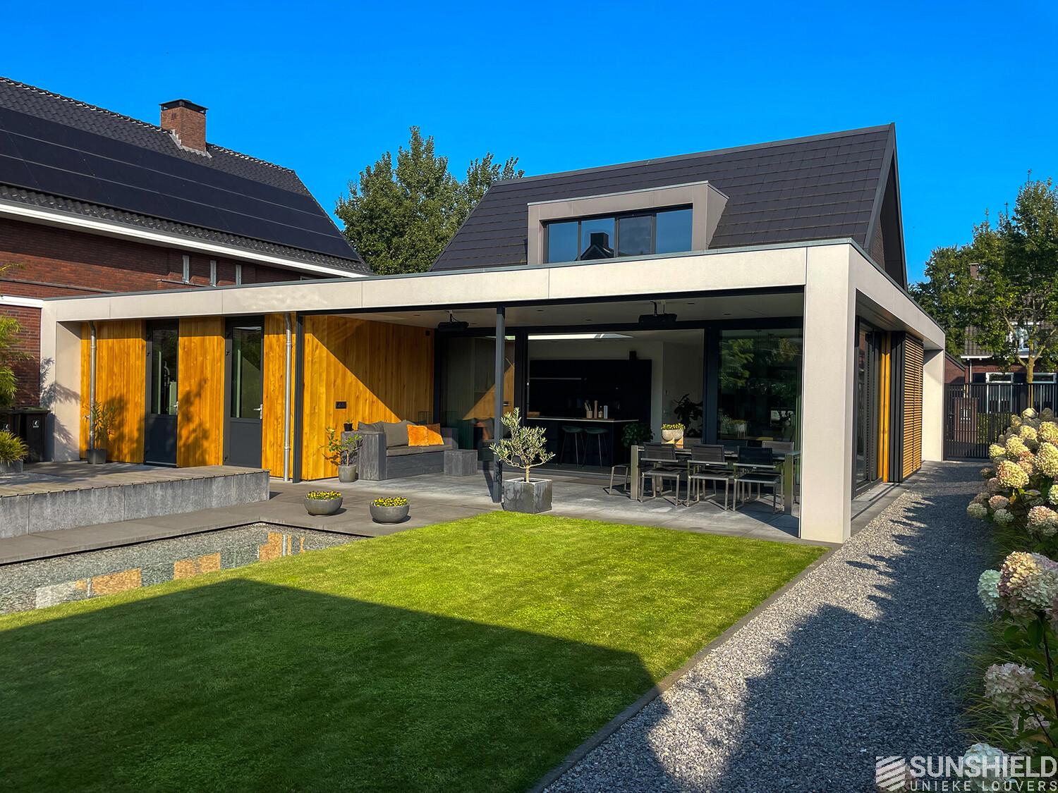 Here, a residence has been fitted with unique louvers. By Sunshield. This new-build home was realised based on a design by Sloven Architecture in Den Bosch (NL).
