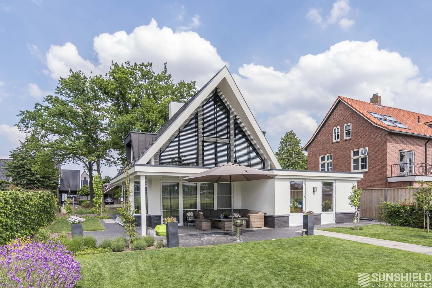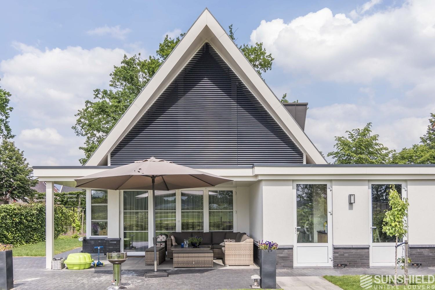 In the picturesque town of Denekamp, in the province of Overijssel (NL), a new house is equipped with two louver systems. Both sunshields are triangular in shape and have a combined surface of almost 16 m2.