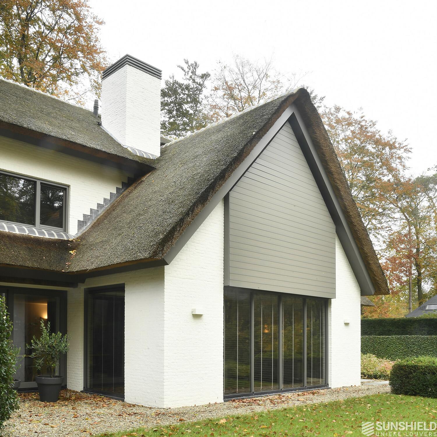 In this idyllic setting a rustic villa is fitted with unique louvers. By Sunshield.