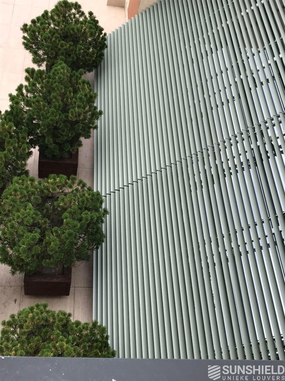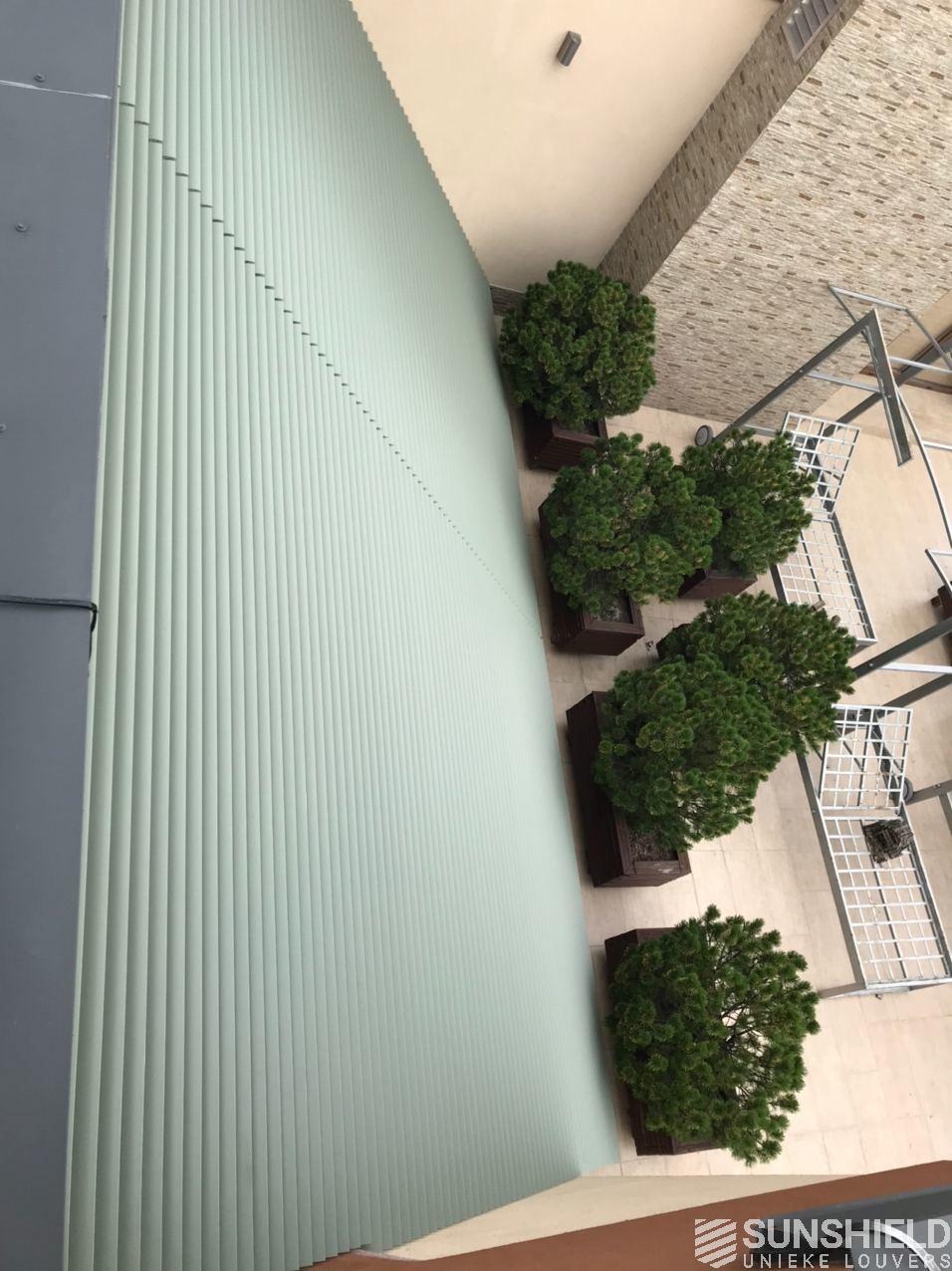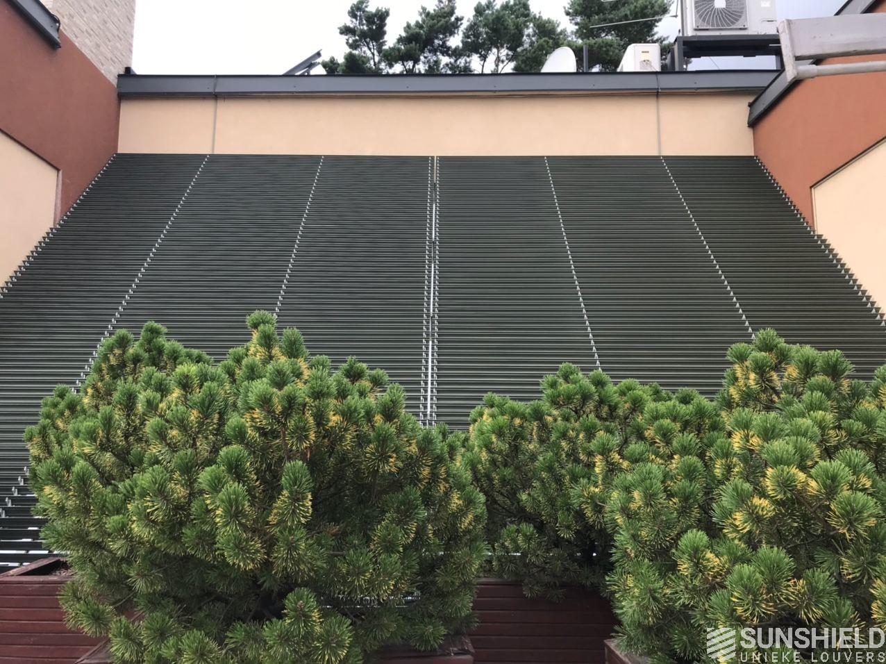 Commissioned by Manezh, Sunshield made two louver systems for a residency in Ukraine. Together these have an area of over 31 m2. Manezh installed the systems on a sloping glass roof.