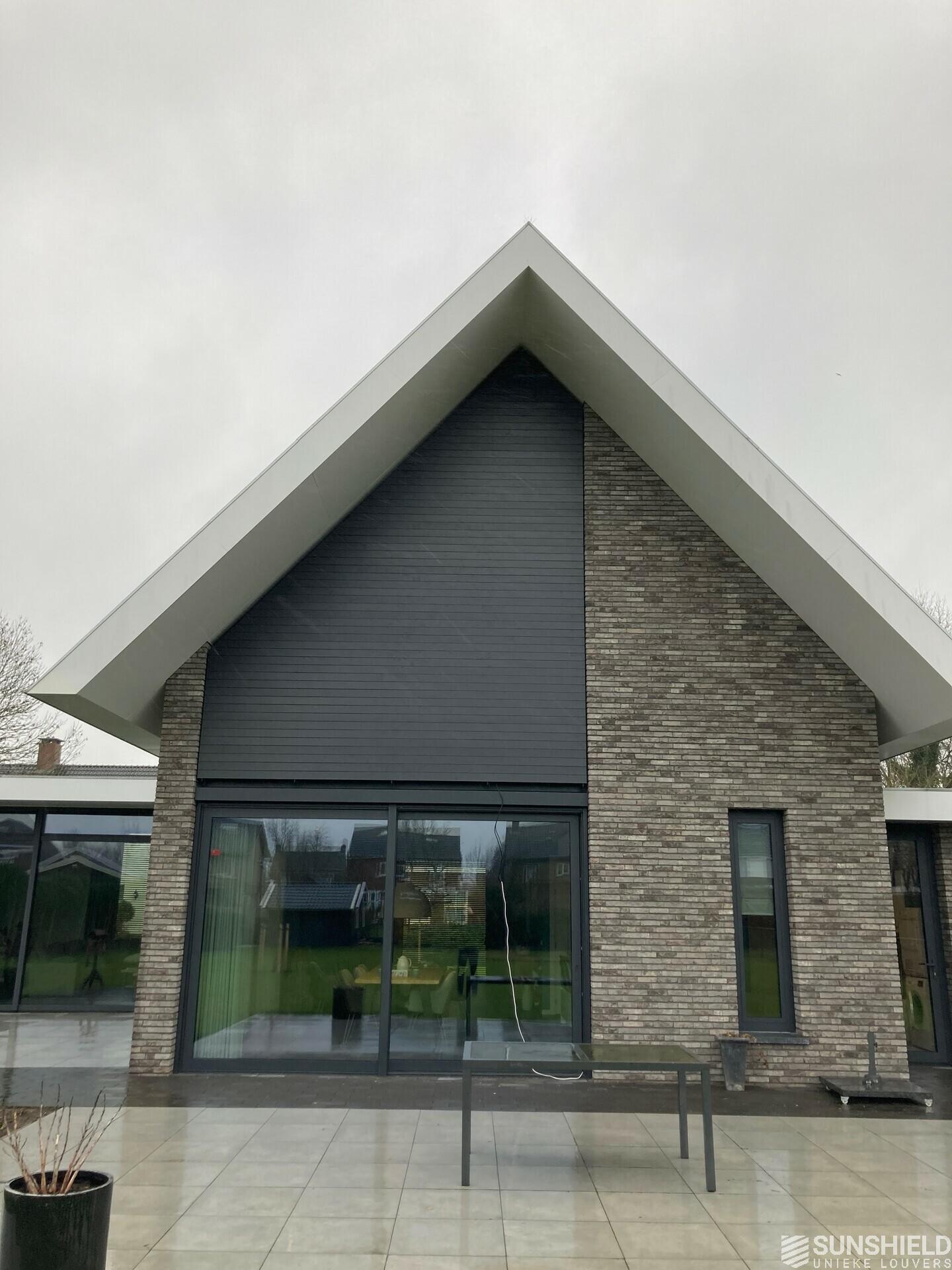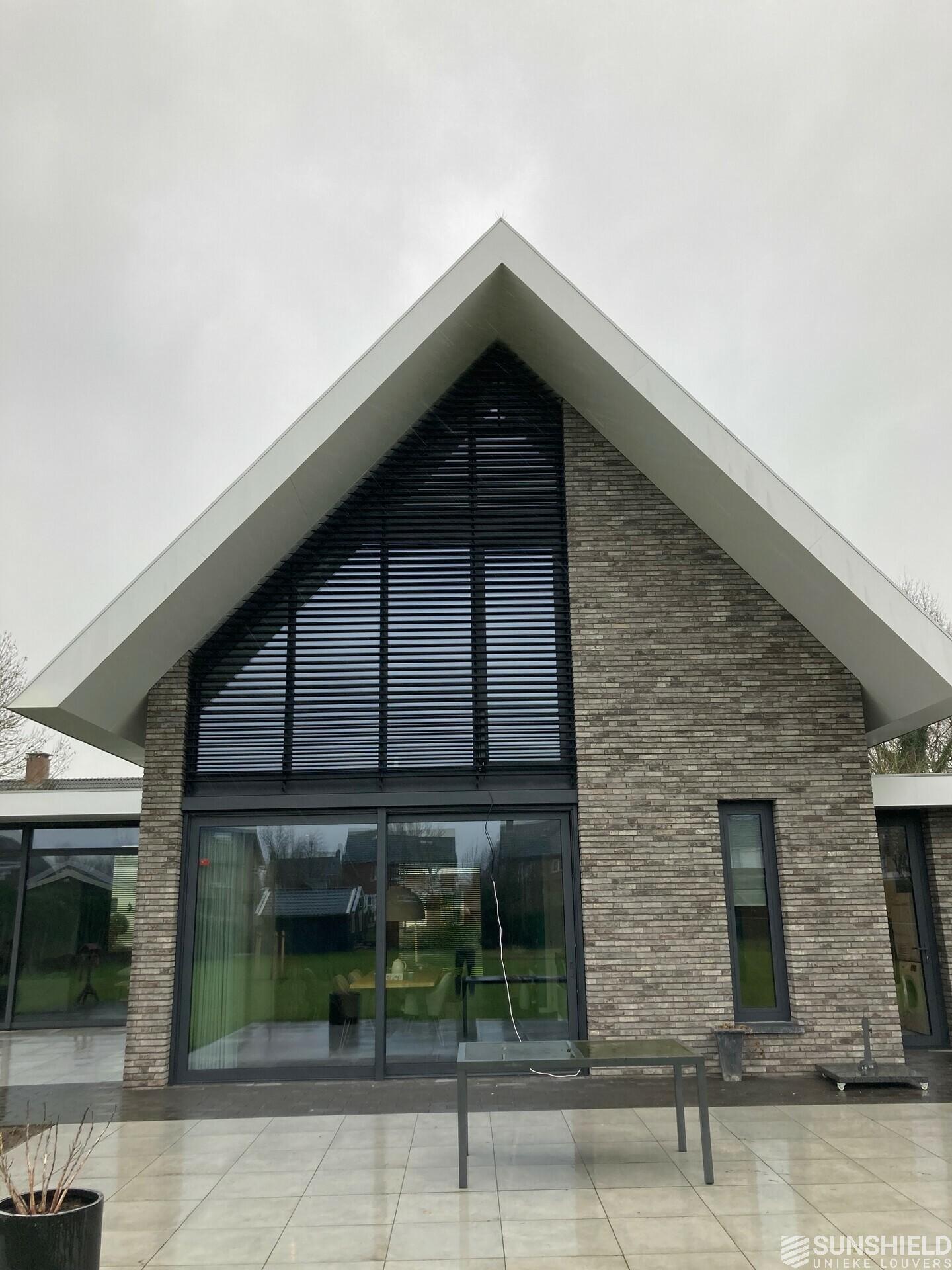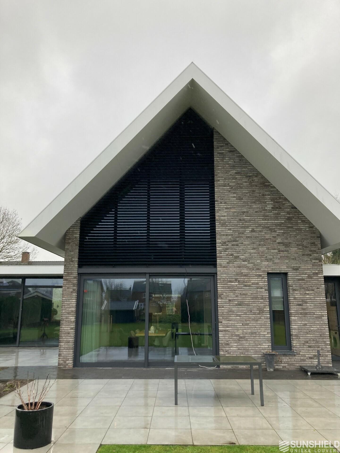 The owners have chosen the 107-E louver. The profile of the 107-E shows a recess, so that the slats do not only overlap, but also fit into each other.