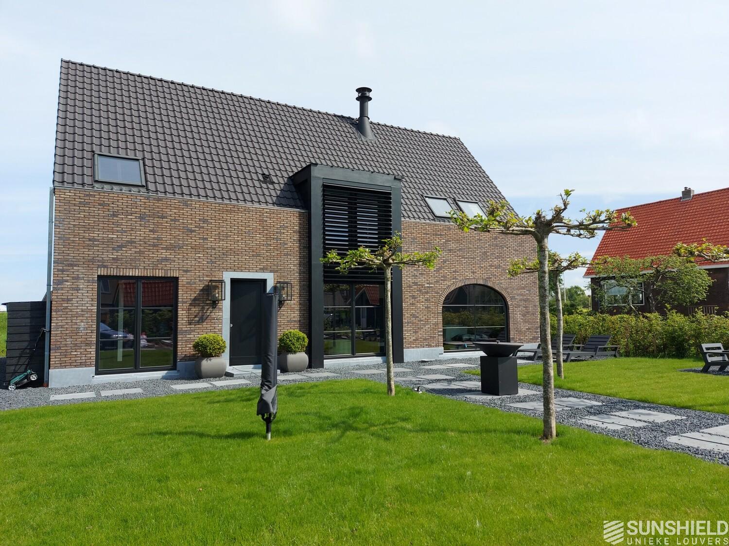 The residents opted for the 150-E louver with a width of 150 mm. When the slats are fully open, the view between the slats is 14 cm. Plenty of daylight.