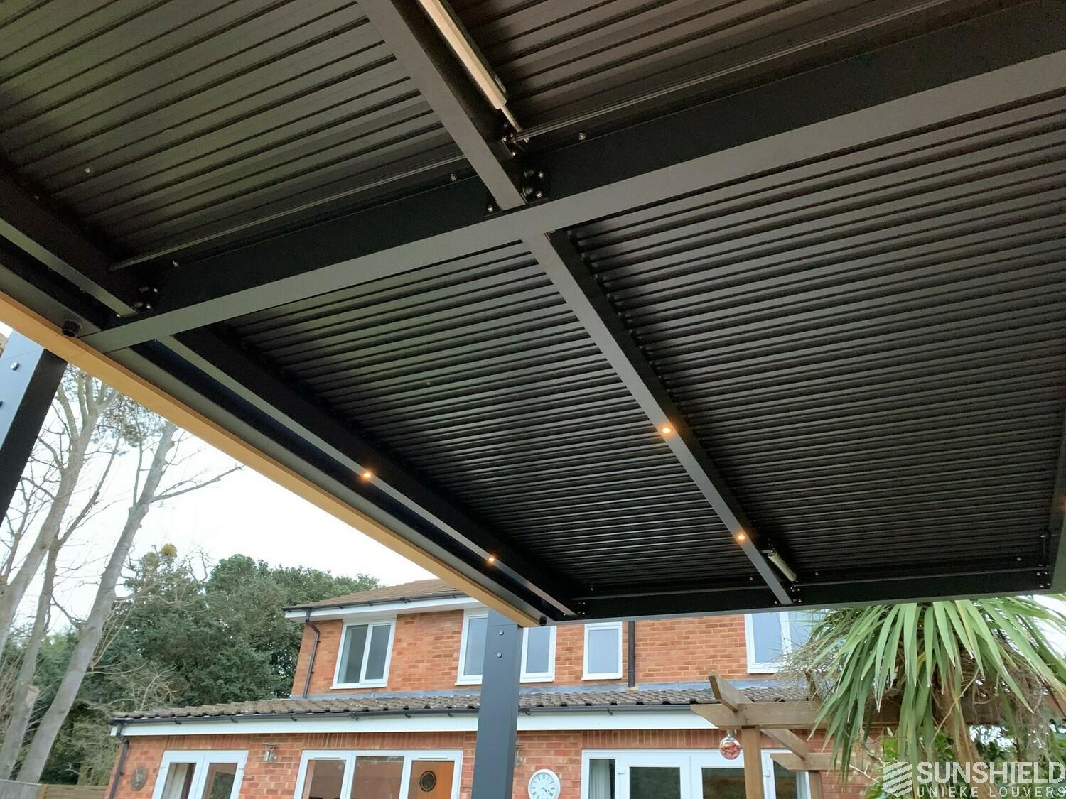 This project is a bespoked louver roof, designed and constructed by Urban Skies our Louver Roof Partner in the UK. The perimeter construction has been made by Urban Skies, and the flexible louver systems of Sunshield did the rest.
