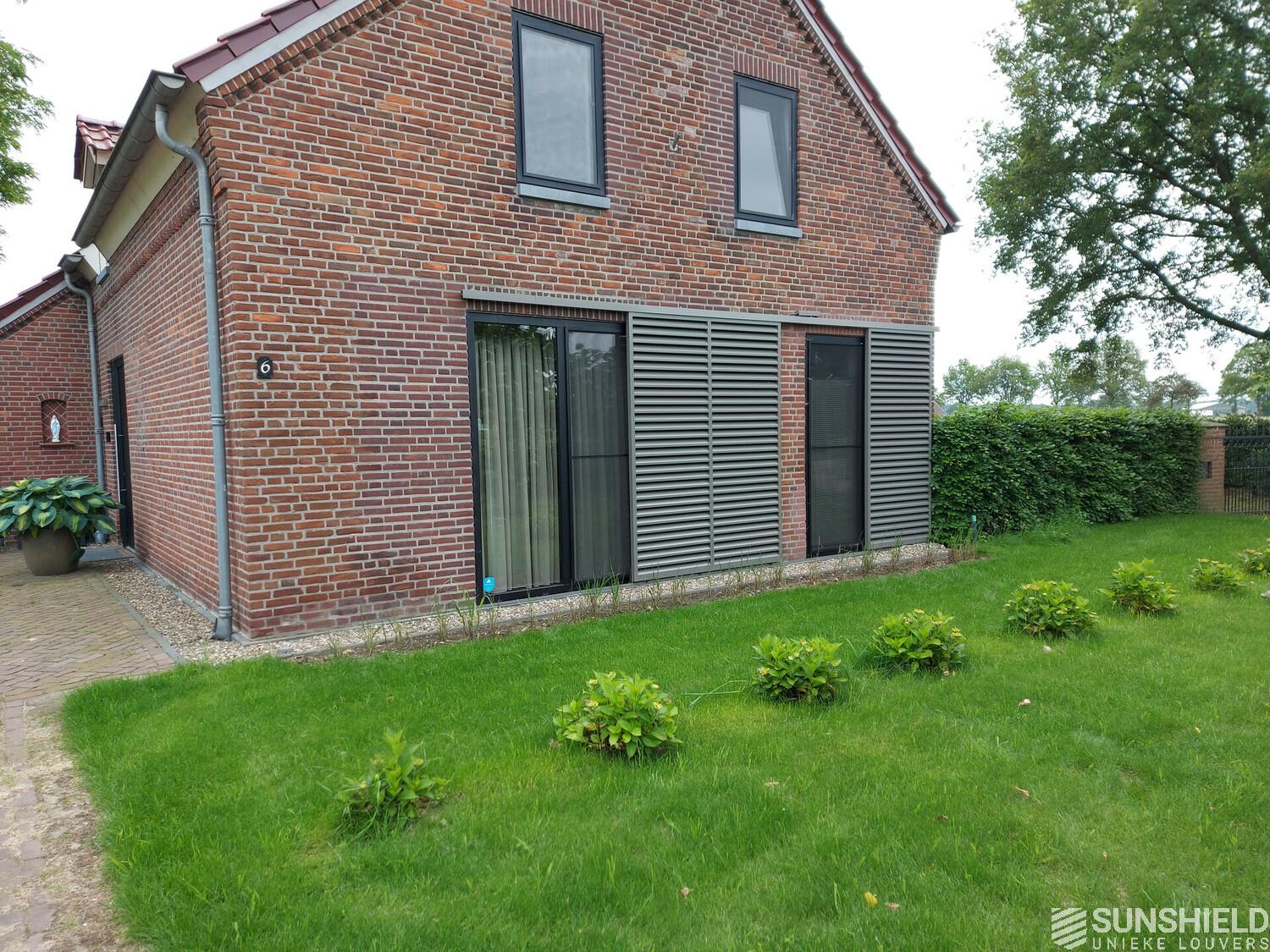 Here, two facades of a country house are equipped with sliding panels with aluminium louvers. By Sunshield, in collaboration with architectural firm Donkers Relou.