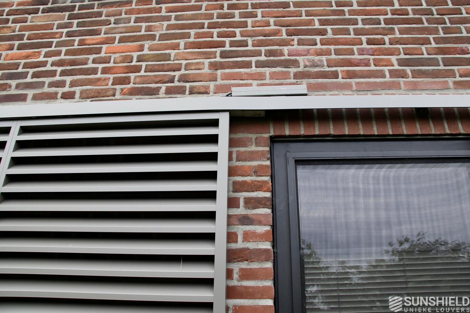 In this detached house, the gable on the street side is equipped with two sliding louver systems. The left panel consists of two segments, is two meters wide and motorized.