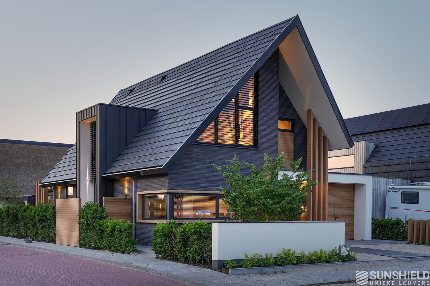 Here, in collaboration with Bongers Architects in Oud-Alblas, a modern villa is provided with multiple louver systems. By Sunshield.