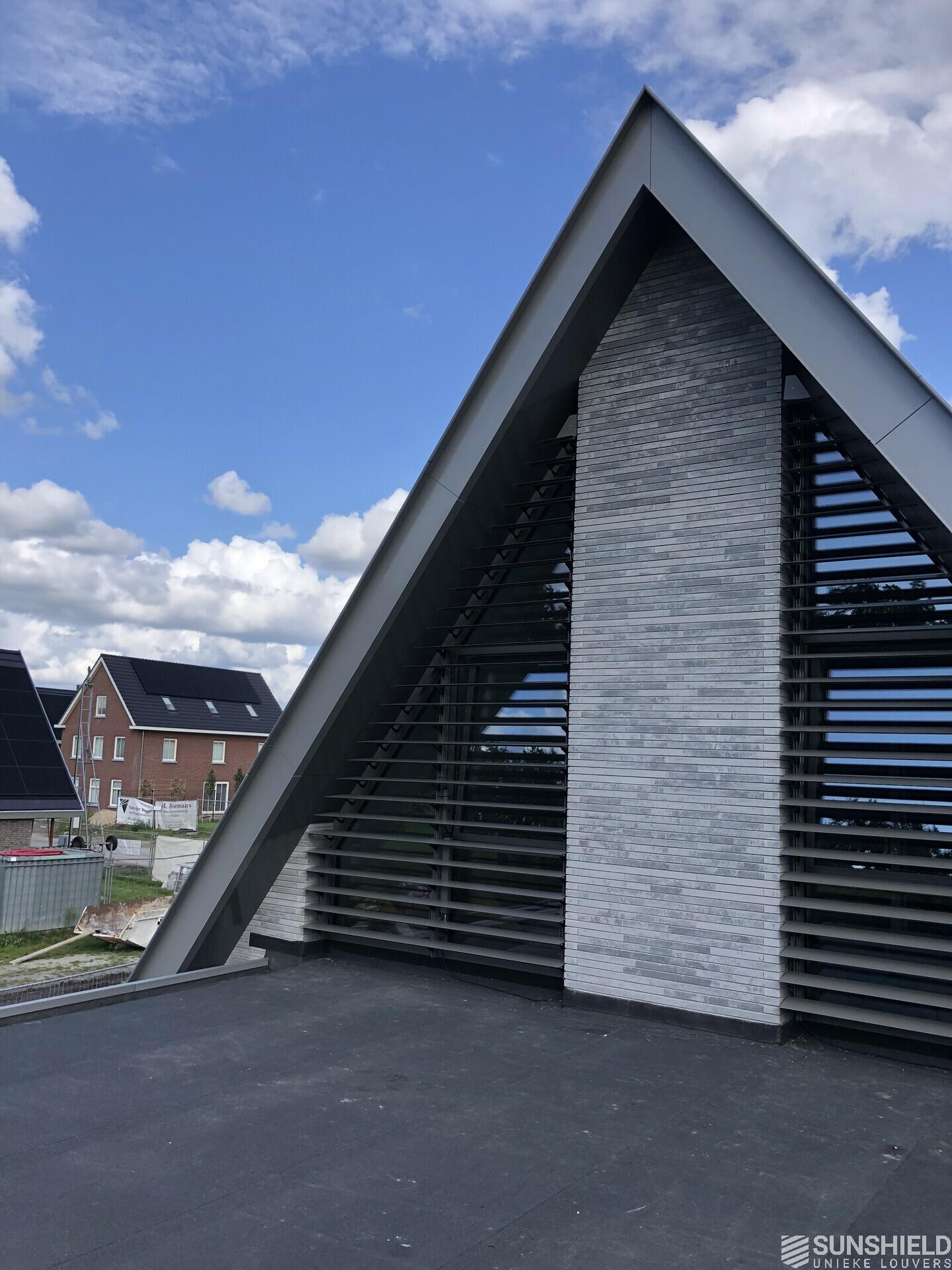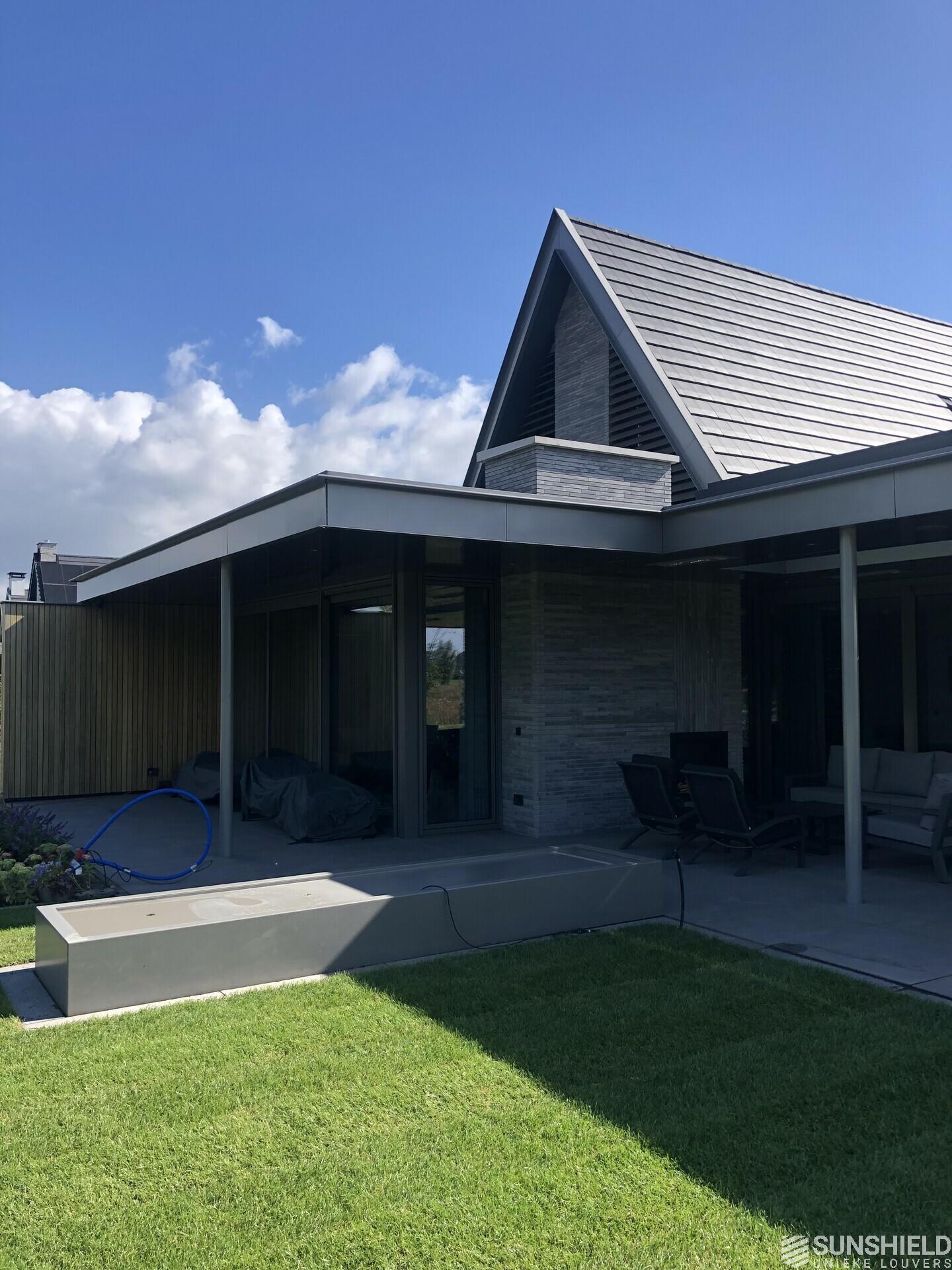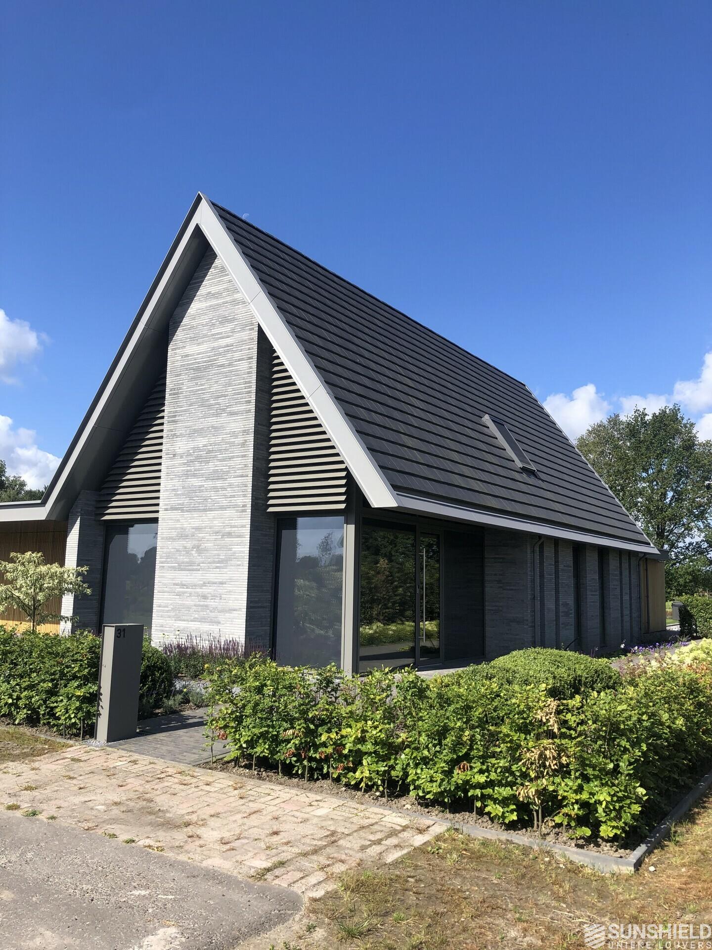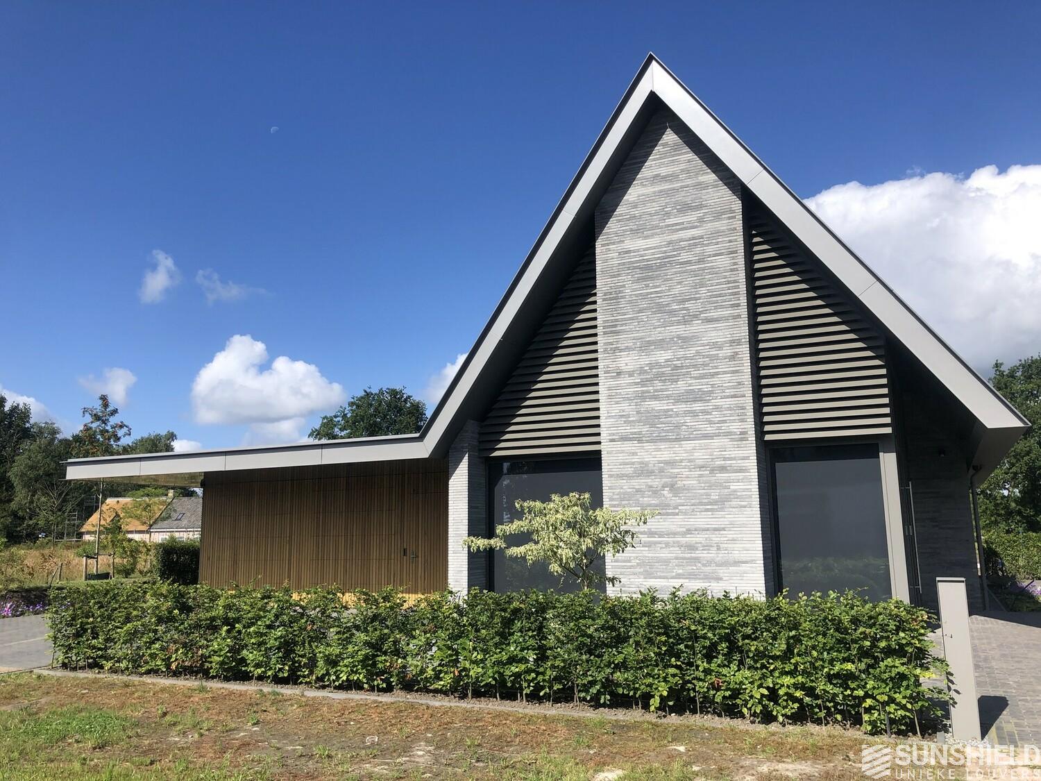 Here, a detached house has been fitted with unique louvers. By Sunshield, in collaboration with Contractor A&M Hersmis in Rijen. The front and rear facades are equipped with slat systems.