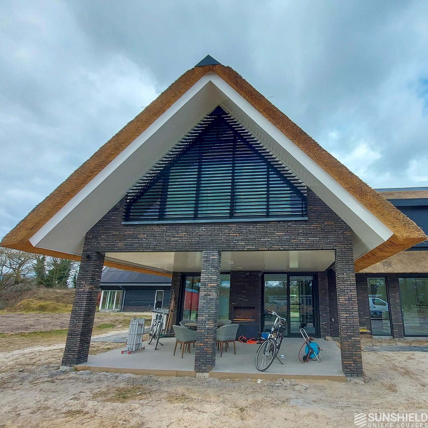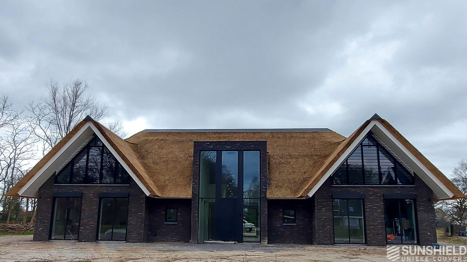 Here is a modern country house equipped with unique louvers. By Sunshield, commissioned by Fikkert Zonwering also located in Almelo (NL).