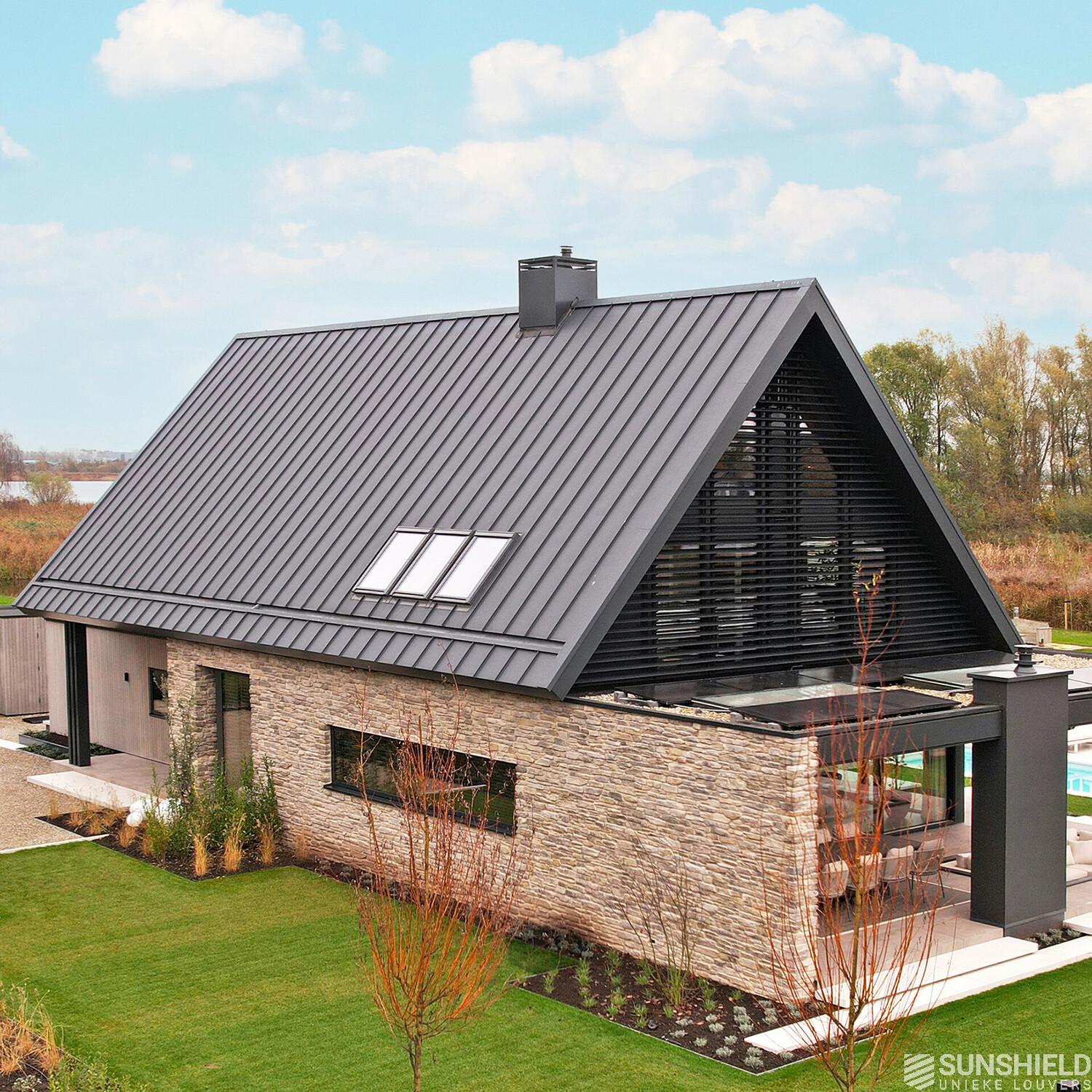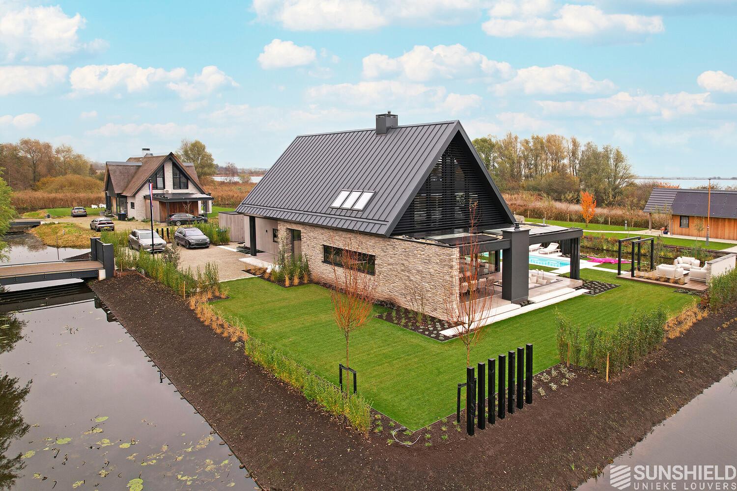 Here, a modern villa has been equipped with unique louvers. By Sunshield, commissioned by the lighting and design agency Studio MBC in Reeuwijk.