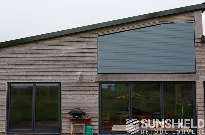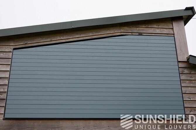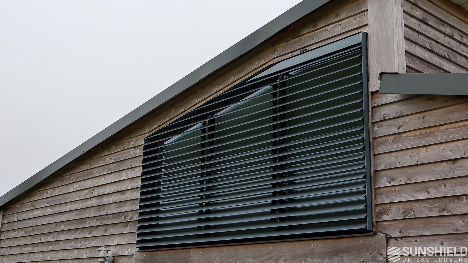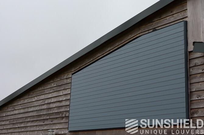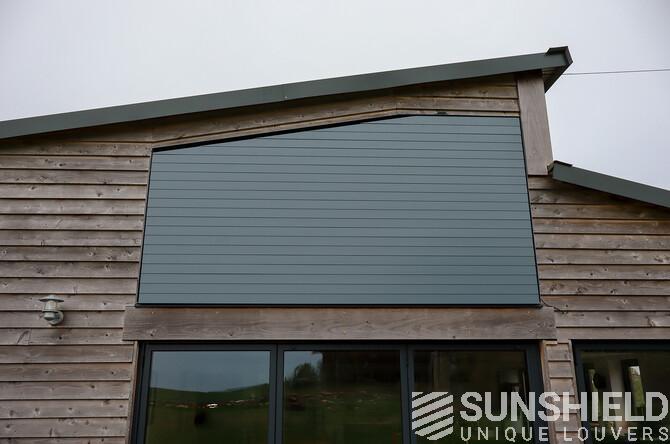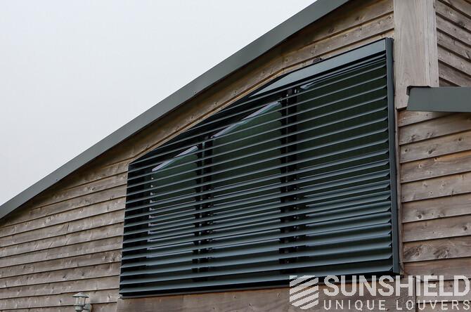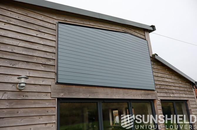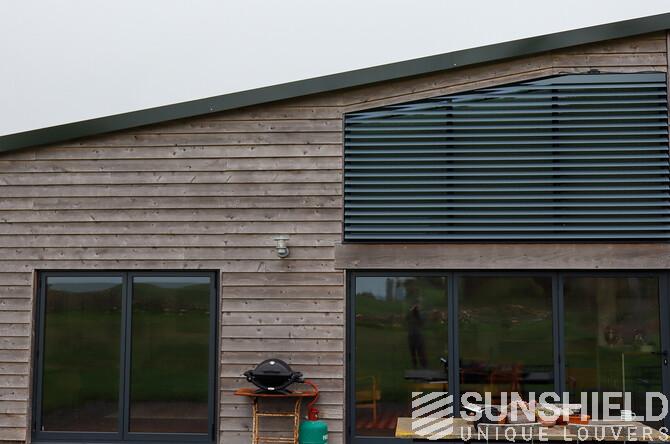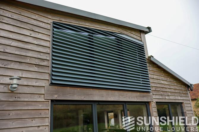 The result is a stylish and functional sun protection system that perfectly complements the architectural style of the barn. The 96-E louvers significantly reduced solar gain in the bedroom, maintaining a comfortable indoor temperature throughout the day.