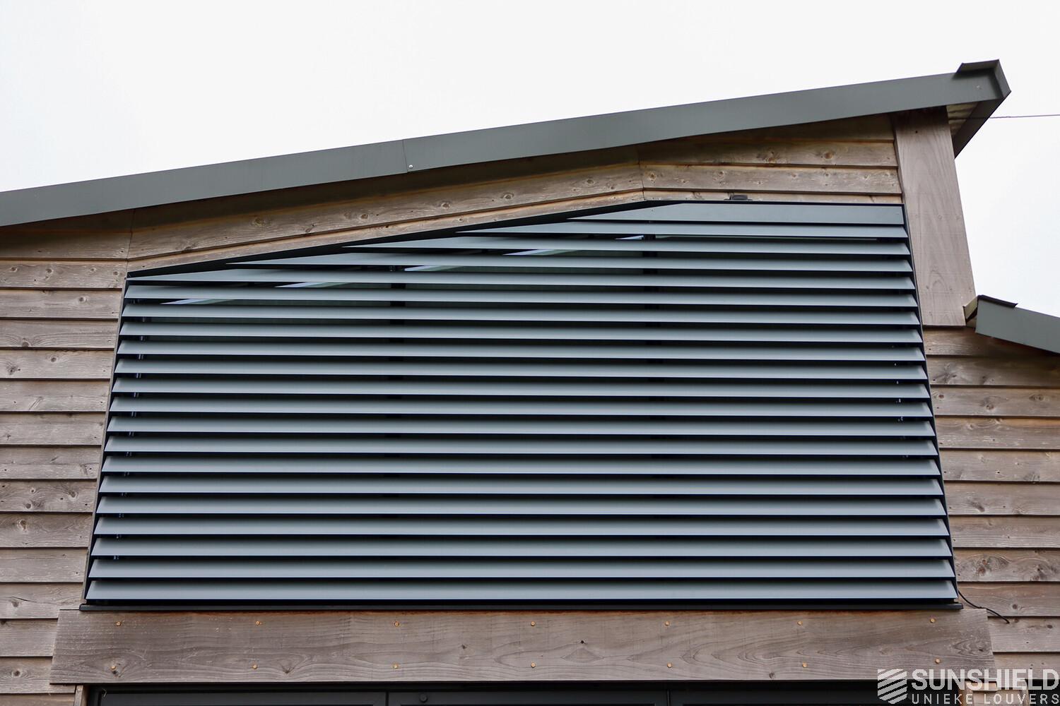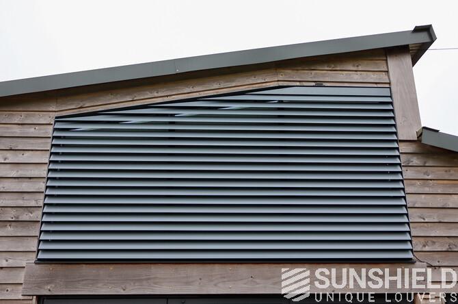The colleagues in England recommended a 96E aluminium louver system. This is a sleek and versatile option with excellent sun protection properties. Thanks to the generous 9-centimeter spacing between the blades, this system also offers significant visual transparency.