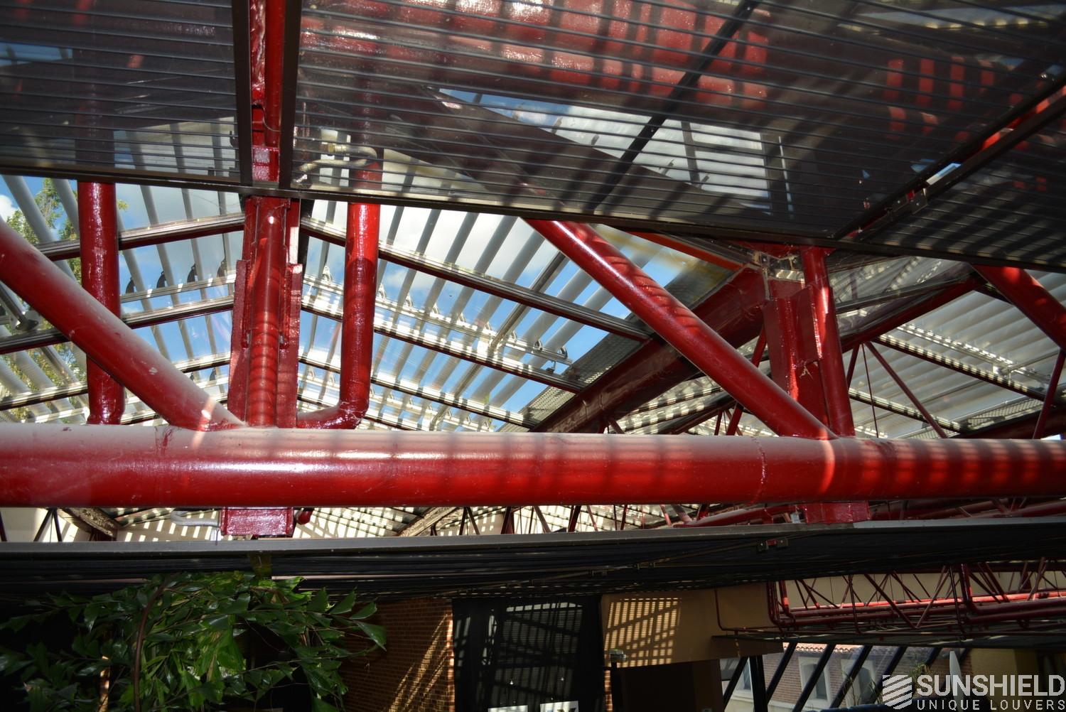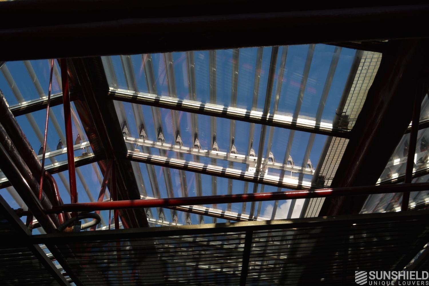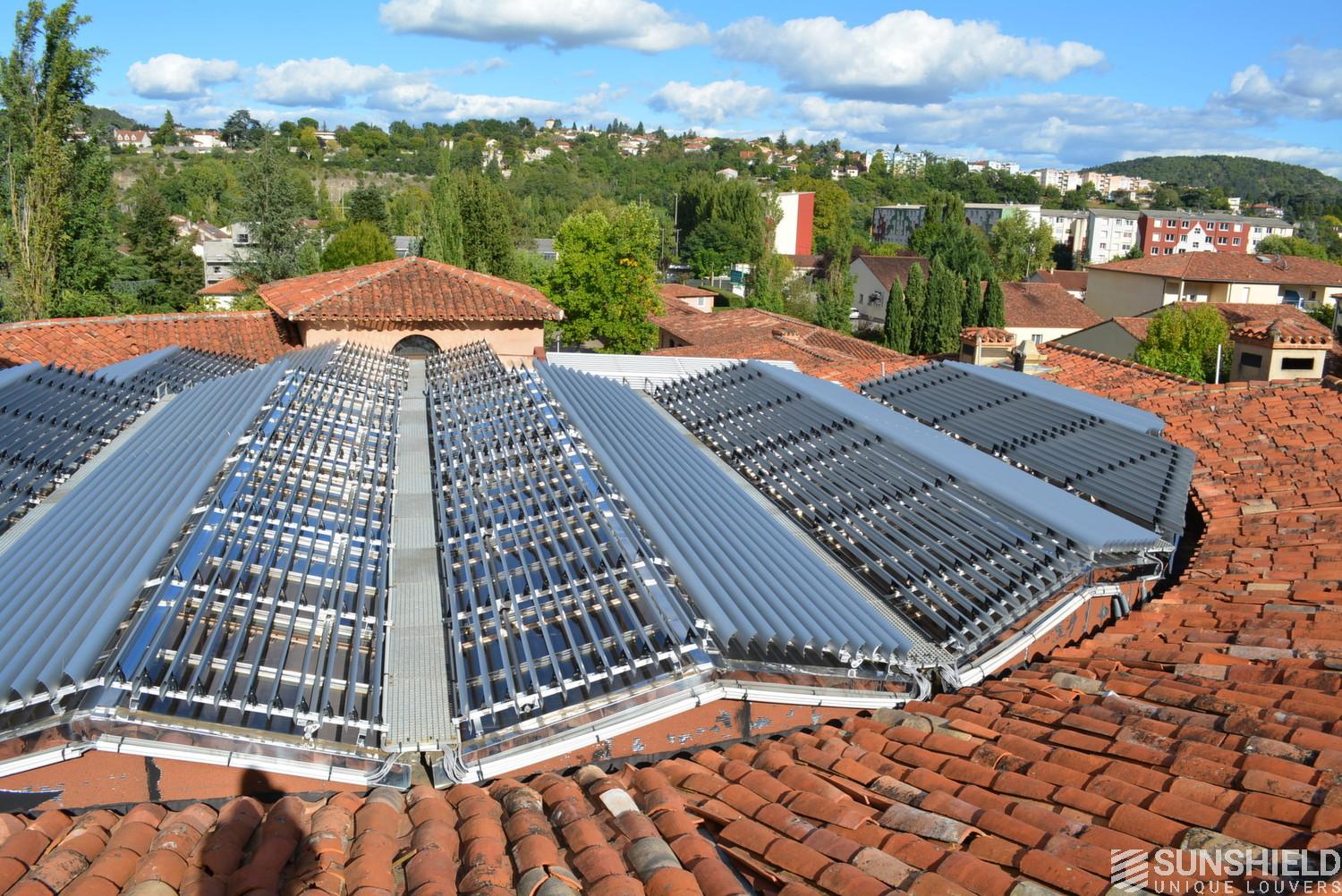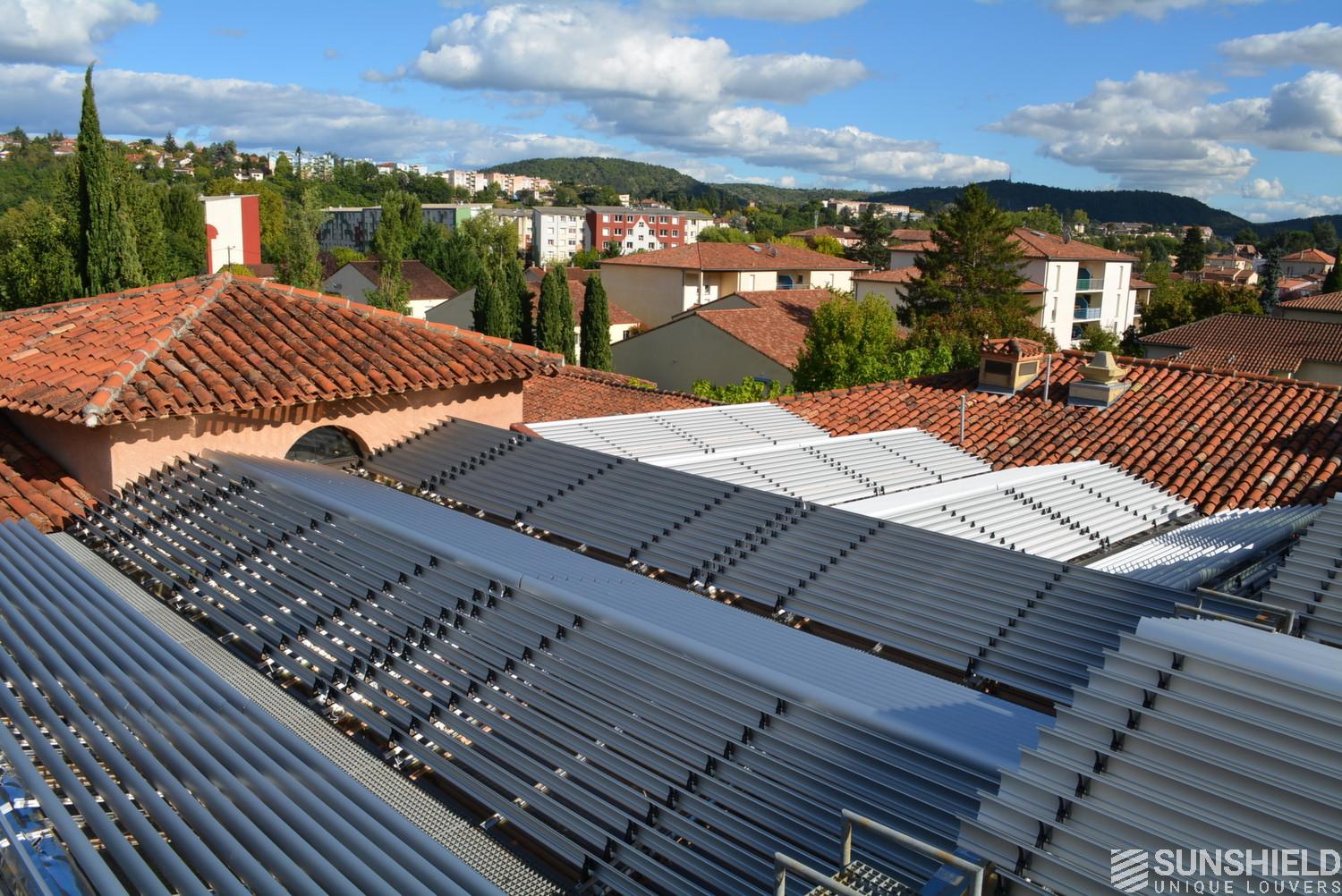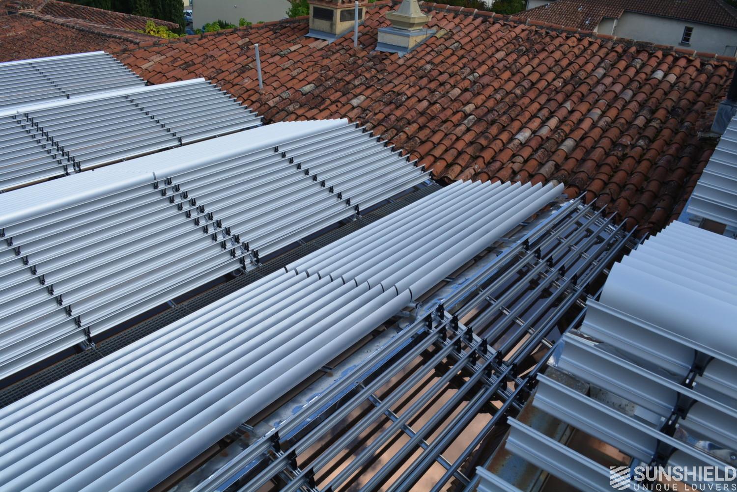 The solution has been designed and installed by Sunshield's business partner Selves in Montauban, with direct support of Somfy France for the automatic control and steering of the tilting louvers. The end result is a very robust and easy to operate system.