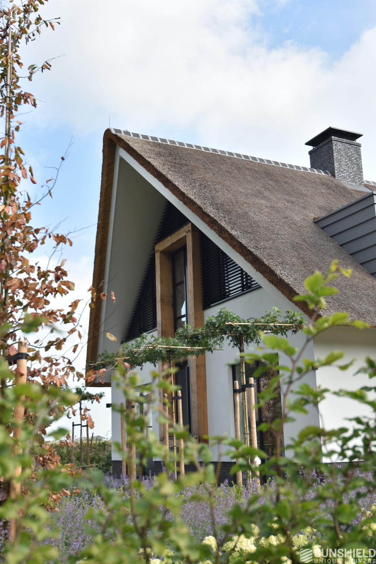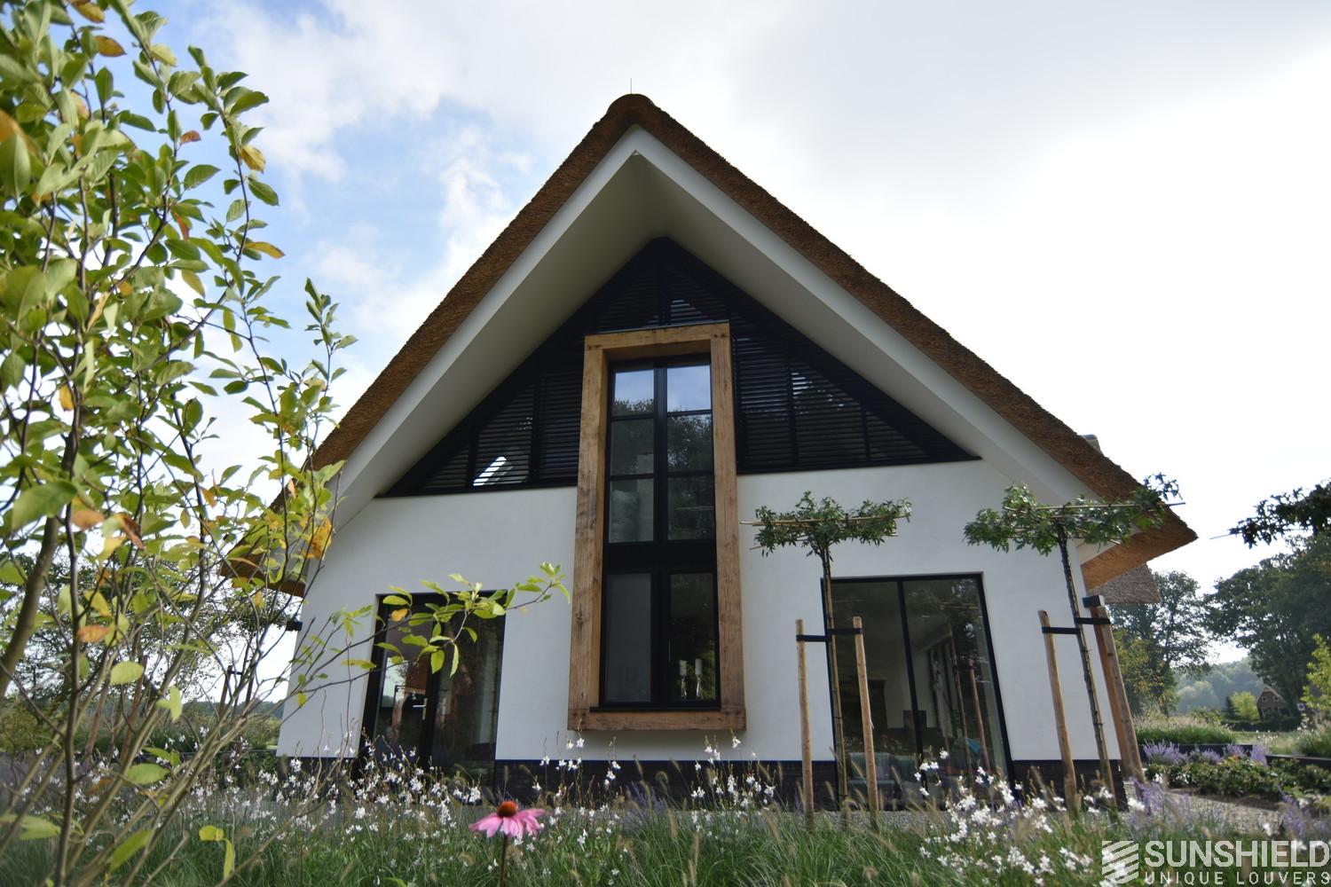 Dwingeloo is located roughly in the heart of Drenthe. Here are the right and left side gables and the front of a rural villa fitted with louver systems. By Sunshield.