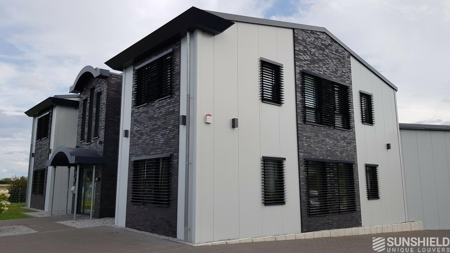 Here, in this rustic environment, the DBN Media office is equipped with louver systems. By Sunshield, in collaboration with Vivante Bosman in Borculo (Netherlands).