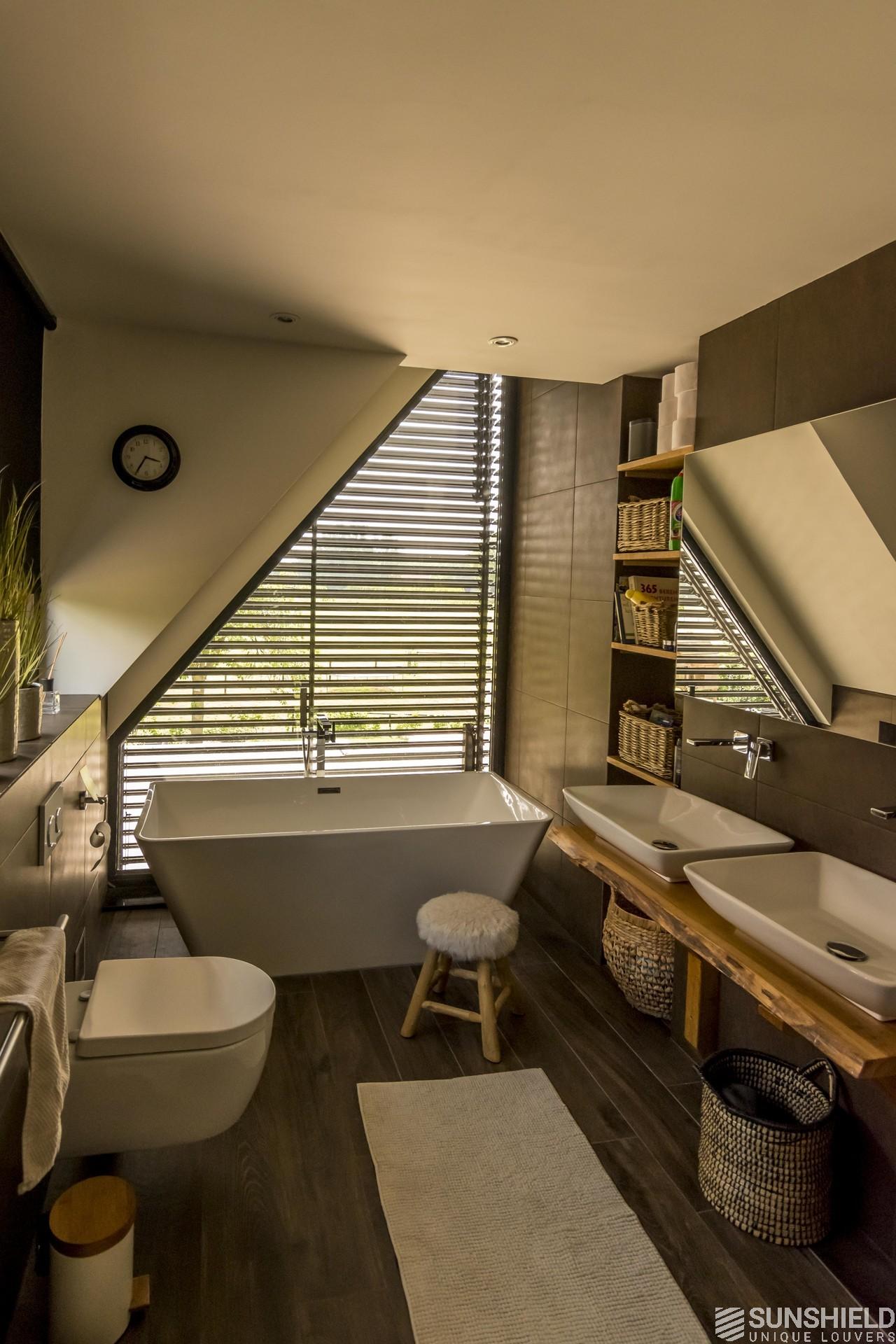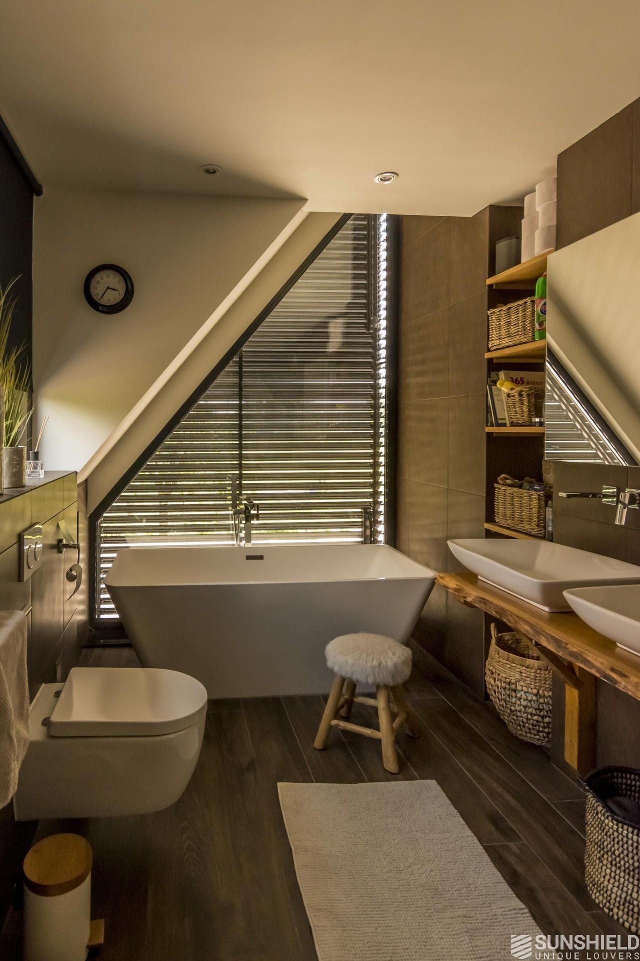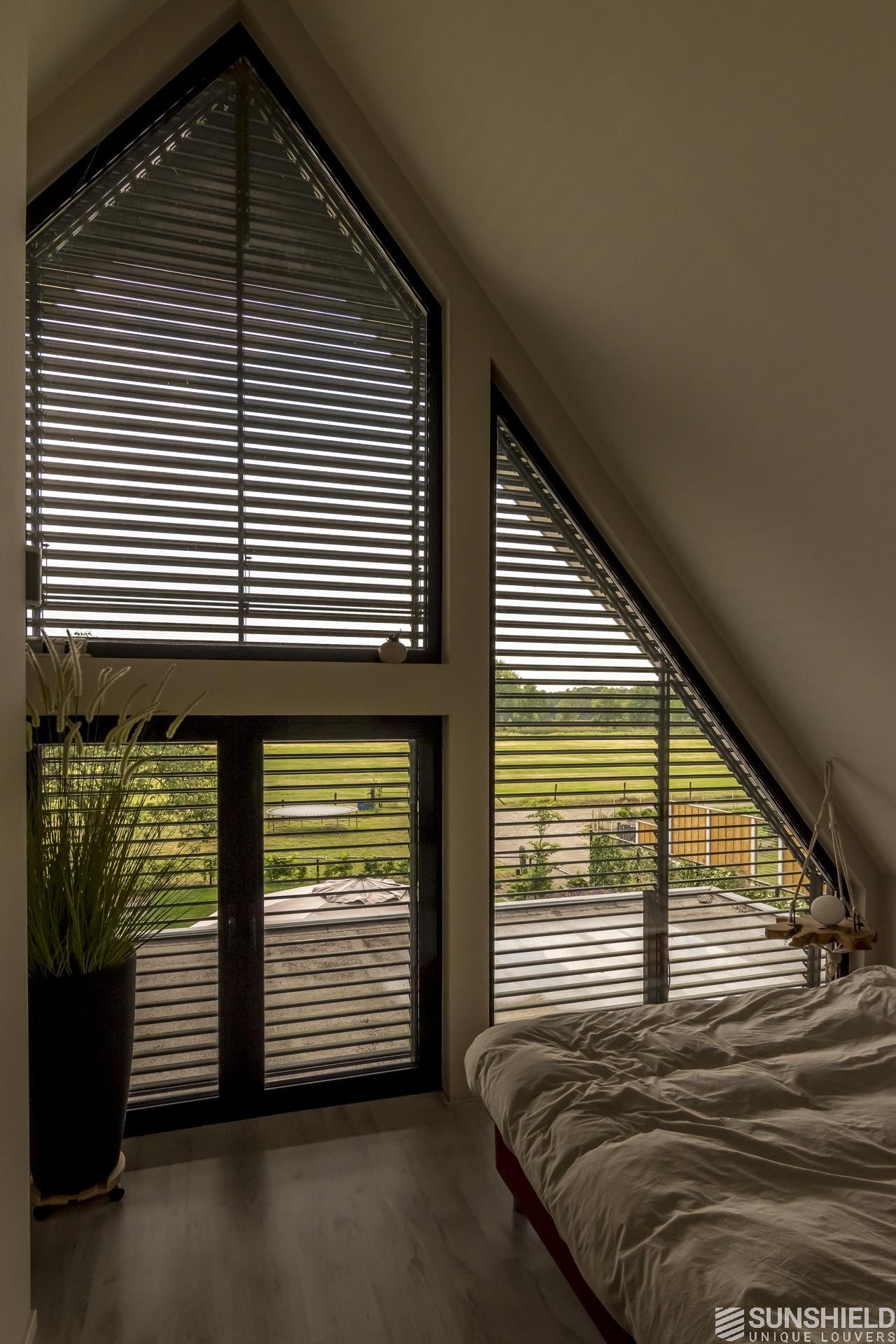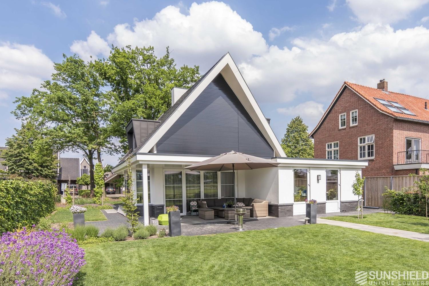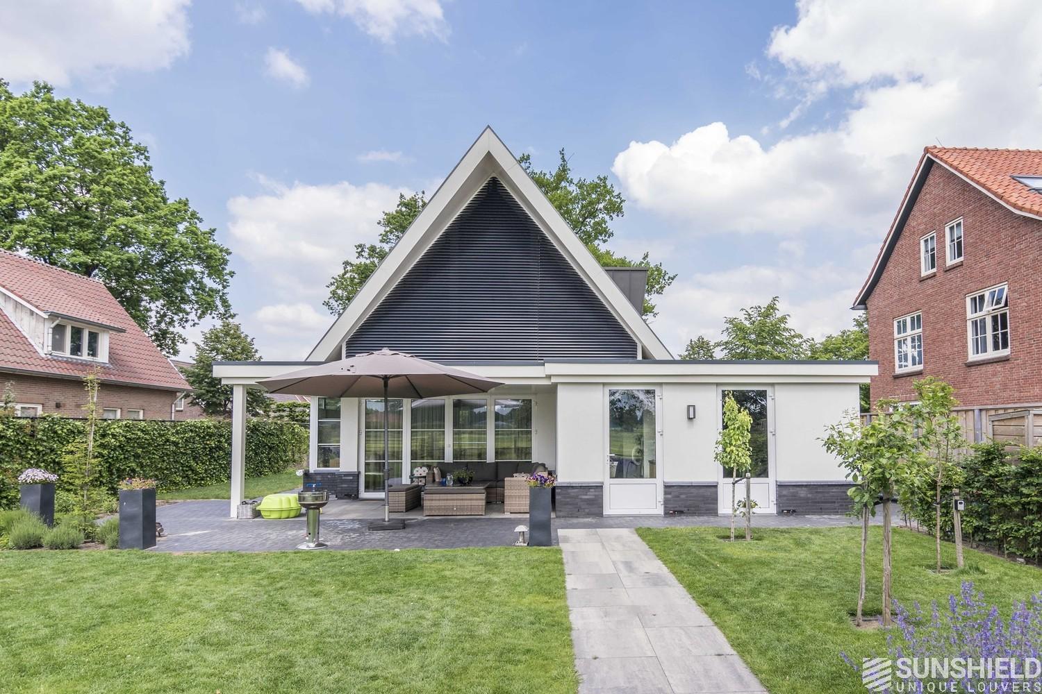 In the picturesque town of Denekamp, in the province of Overijssel (NL), a new house is equipped with two louver systems. Both sunshields are triangular in shape and have a combined surface of almost 16 m2.