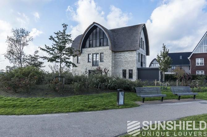 A villa in Badhoevedorp (NL) has on the second floor a beautiful arch shaped window. This large arched window allows great panoramas. On sunny days, however, the residents were bothered with too much sun light.