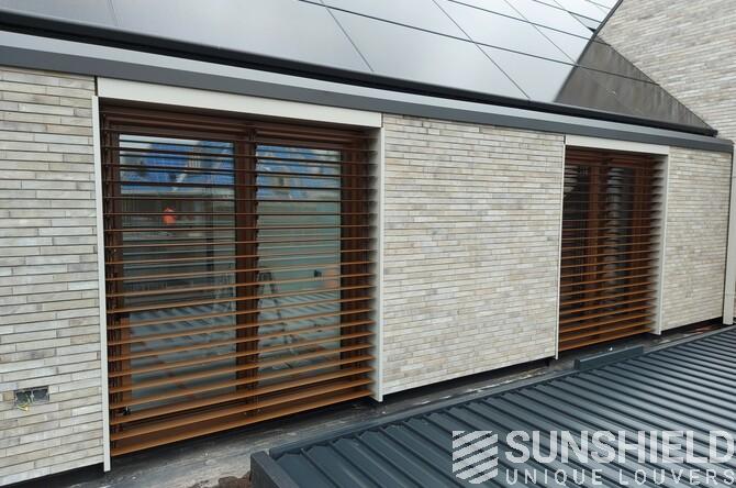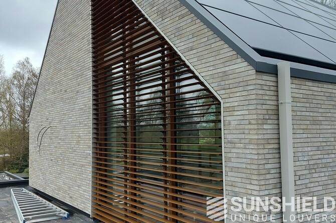 The total surface is 40 m2. The residents opted for the 96-E blade, a louver with a width of 96 mm. If the slats are fully open, a view of 9 cm is created between the slats.