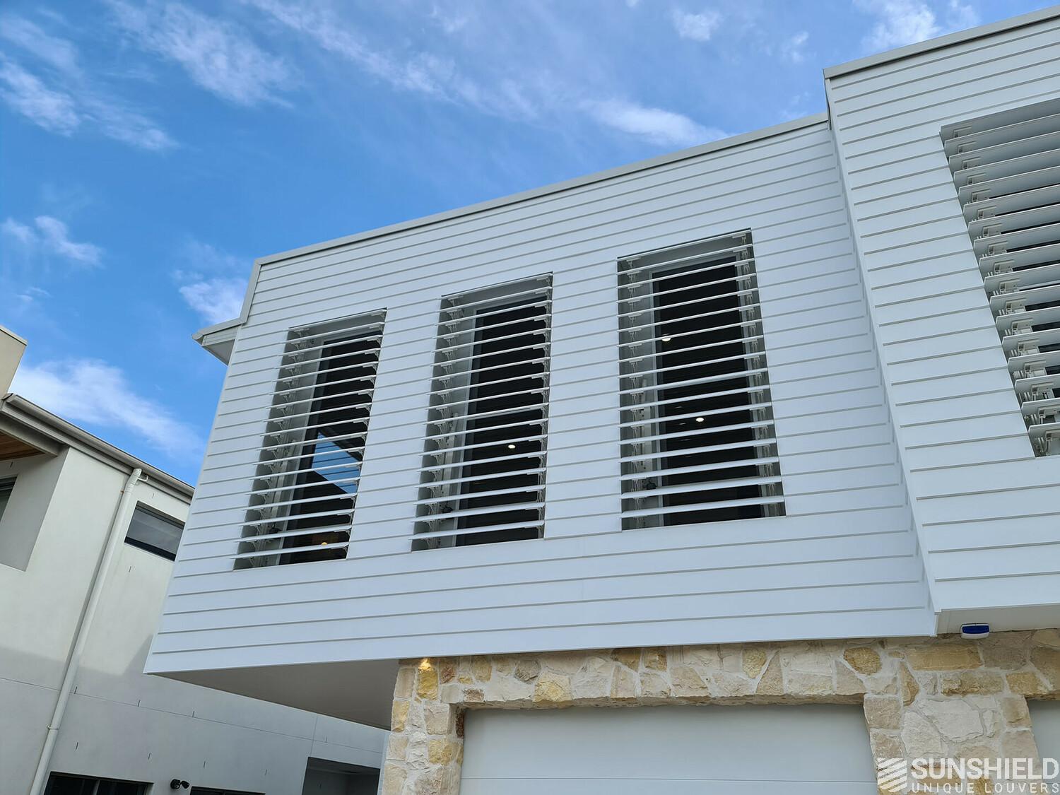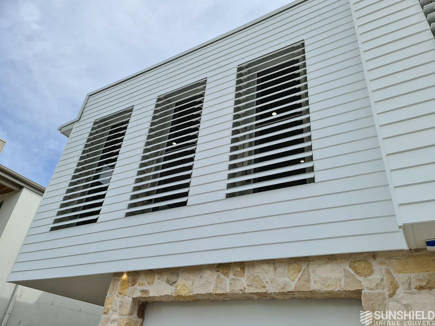 The developer of a new construction project in the south of Sydney is charmed by Sunshield's louver systems. In this case he preferred wooden slats. In fact, he preferred to have blades made of the same wood as the wooden cladding on the first floor.