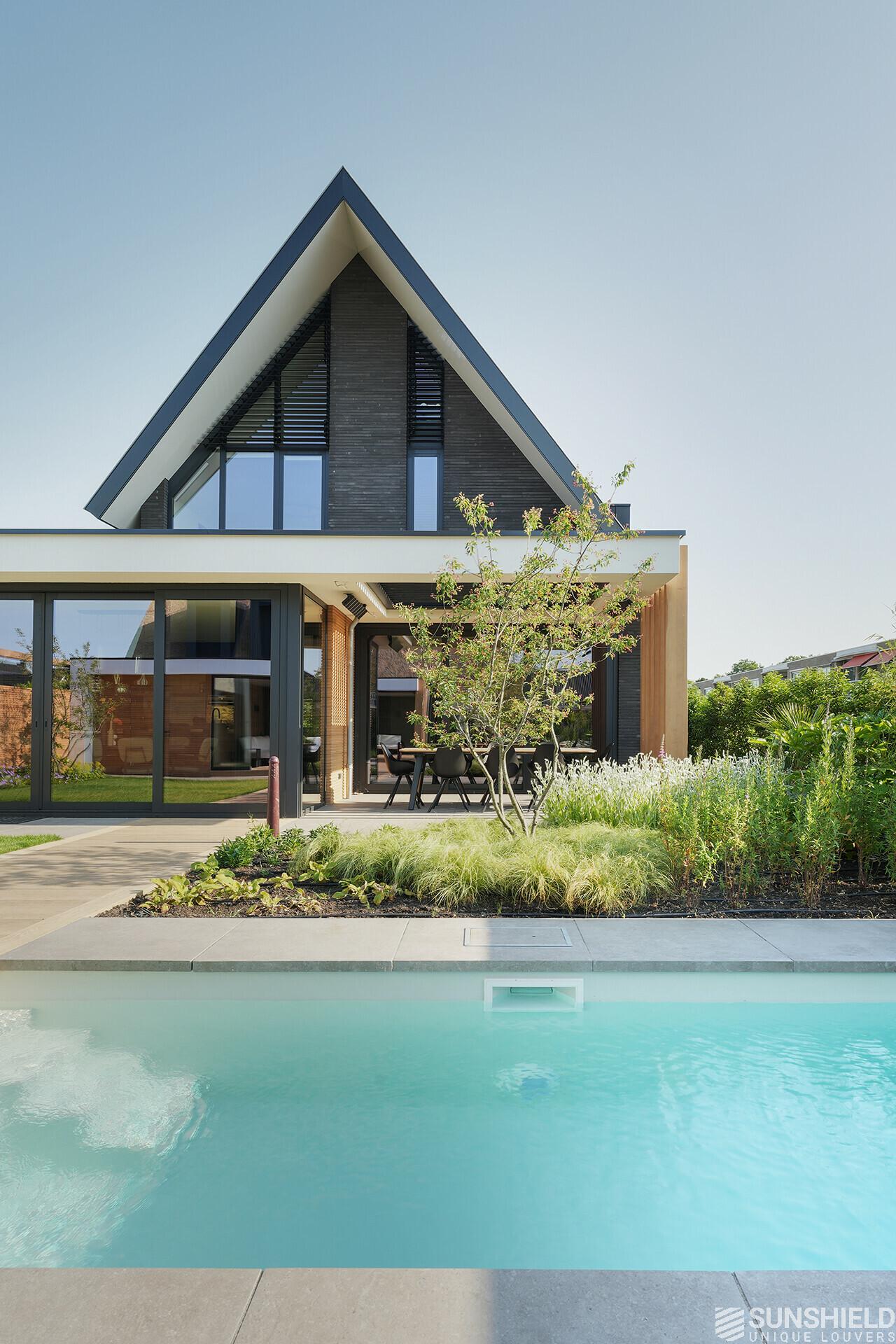 Here, in collaboration with Bongers Architects in Oud-Alblas, a modern villa is provided with multiple louver systems. By Sunshield.