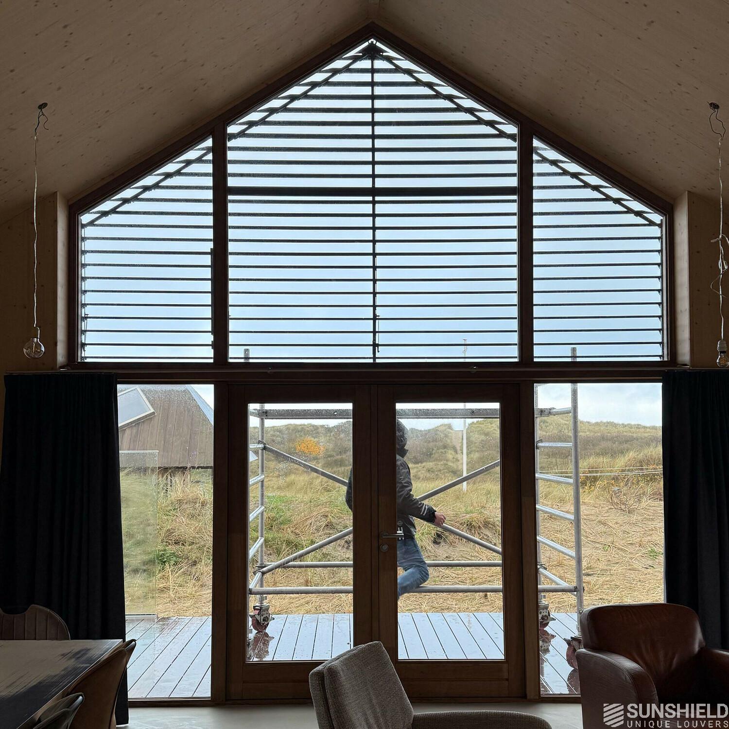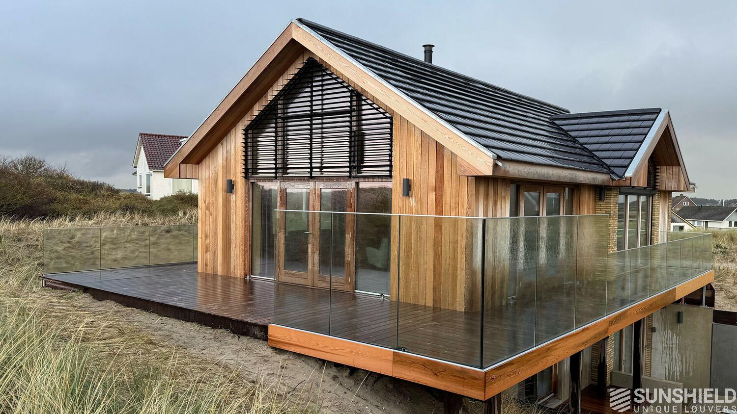 Here a holiday home has been fitted with unique louvers. By Sunshield, commissioned by Veldman Zonwering in Heerenveen (NL). The home has been rebuilt to a design by Jort Spanjer architect.