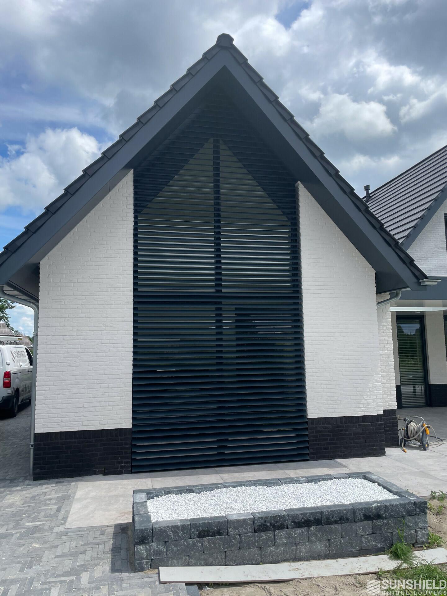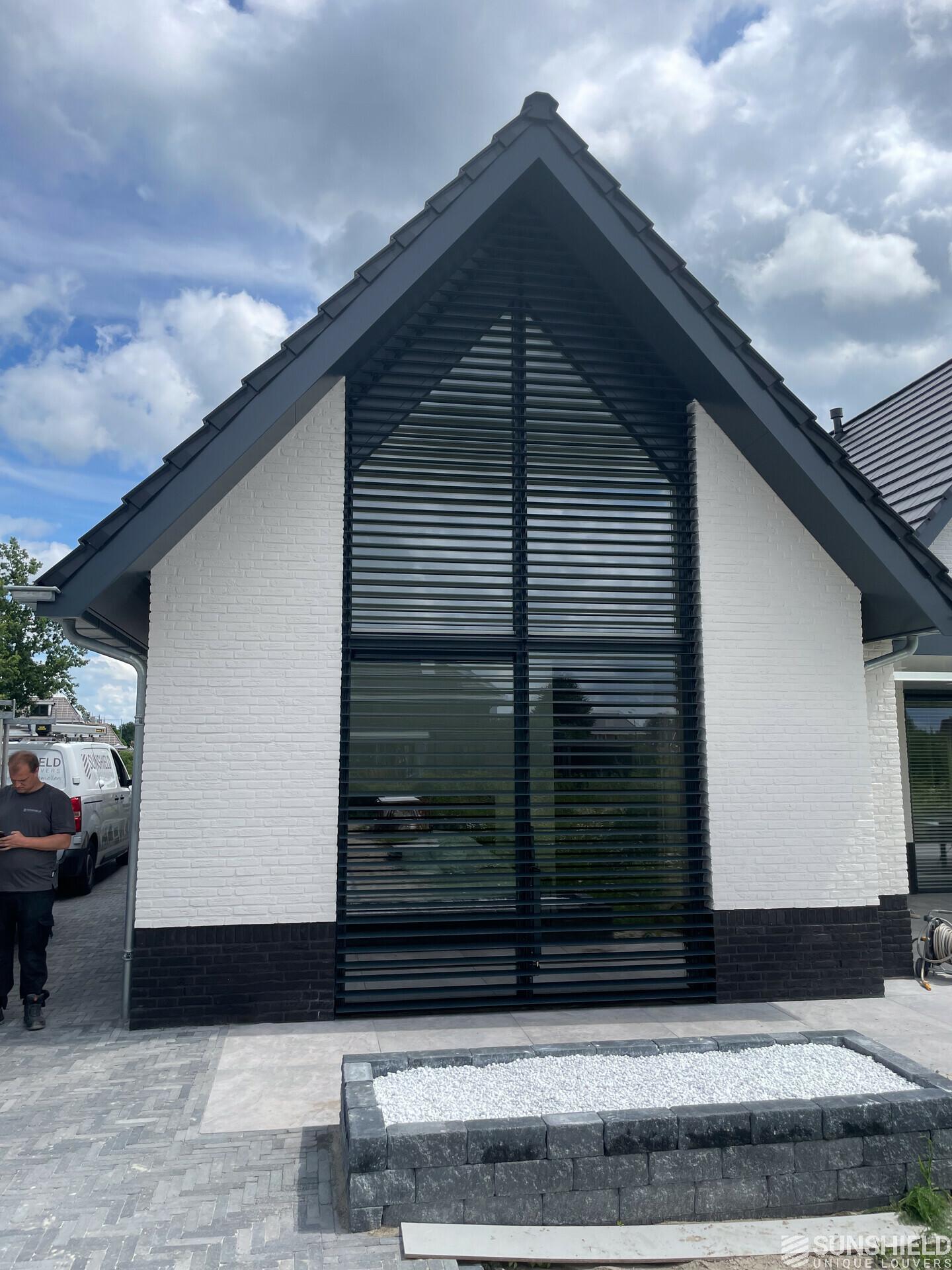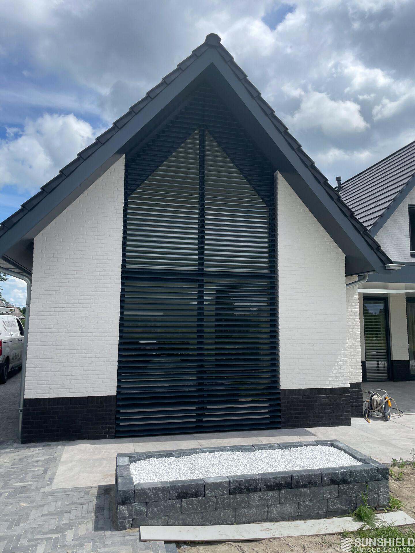In the area of Almelo in the Dutch province of Overijssel, there is a detached house fitted with unique louvers. By Sunshield, in collaboration with Contractor company J.A. Roetgerink in Goor.